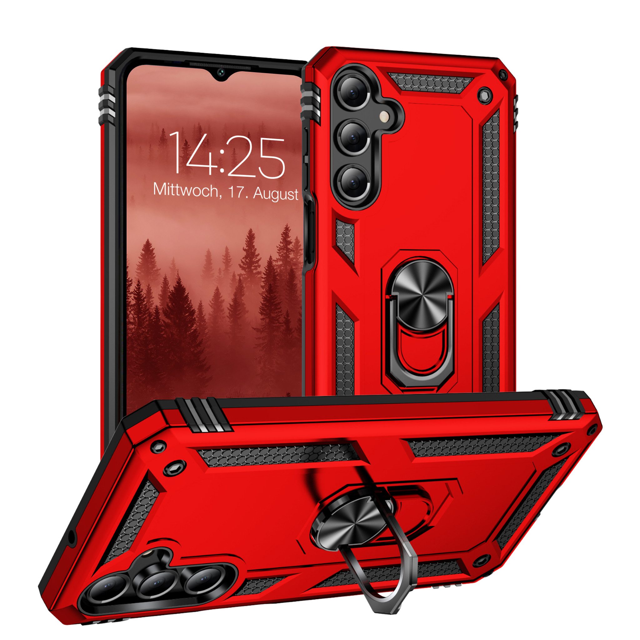 Ausstattung | Outdoor, Kantenschutz, 100% passgenau, Anschlüsse frei zugänglich, Stoßfest, Ständer, Magnet, Ringhalter, Robust, Rutschfest |