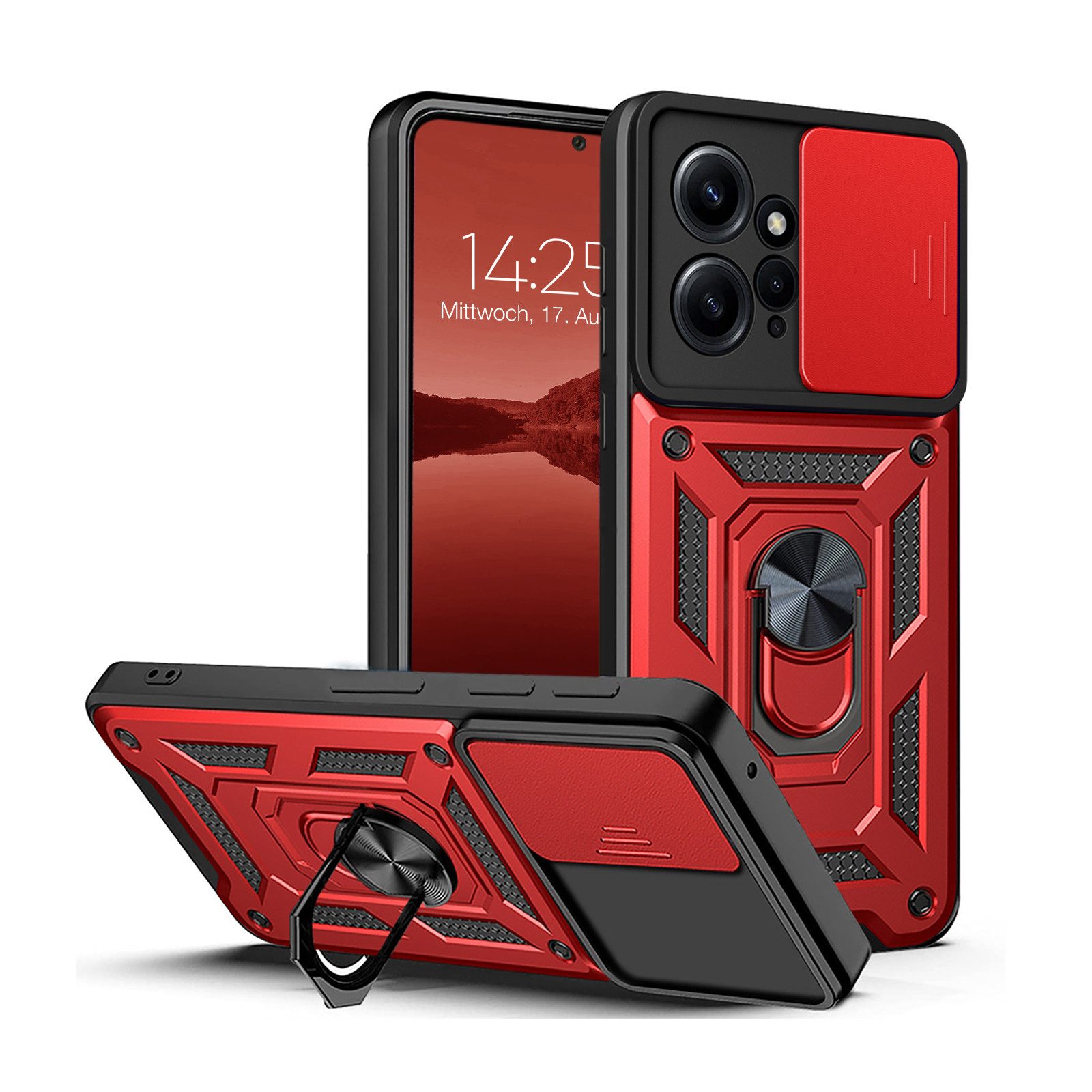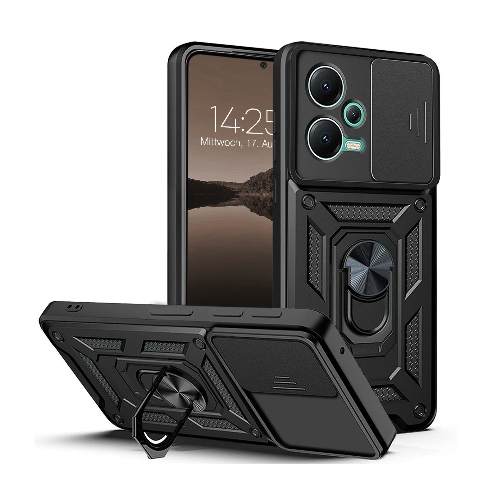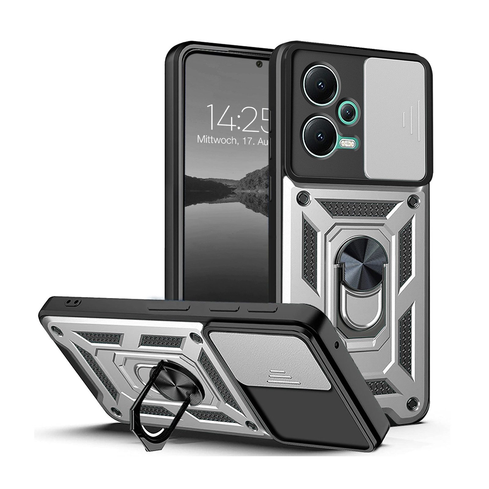 Ausstattung | Outdoor, Kantenschutz, 100% passgenau, Anschlüsse frei zugänglich, Stoßfest, Ständer, Magnet, Ringhalter, Robust, Rutschfest, Kameraschutz |