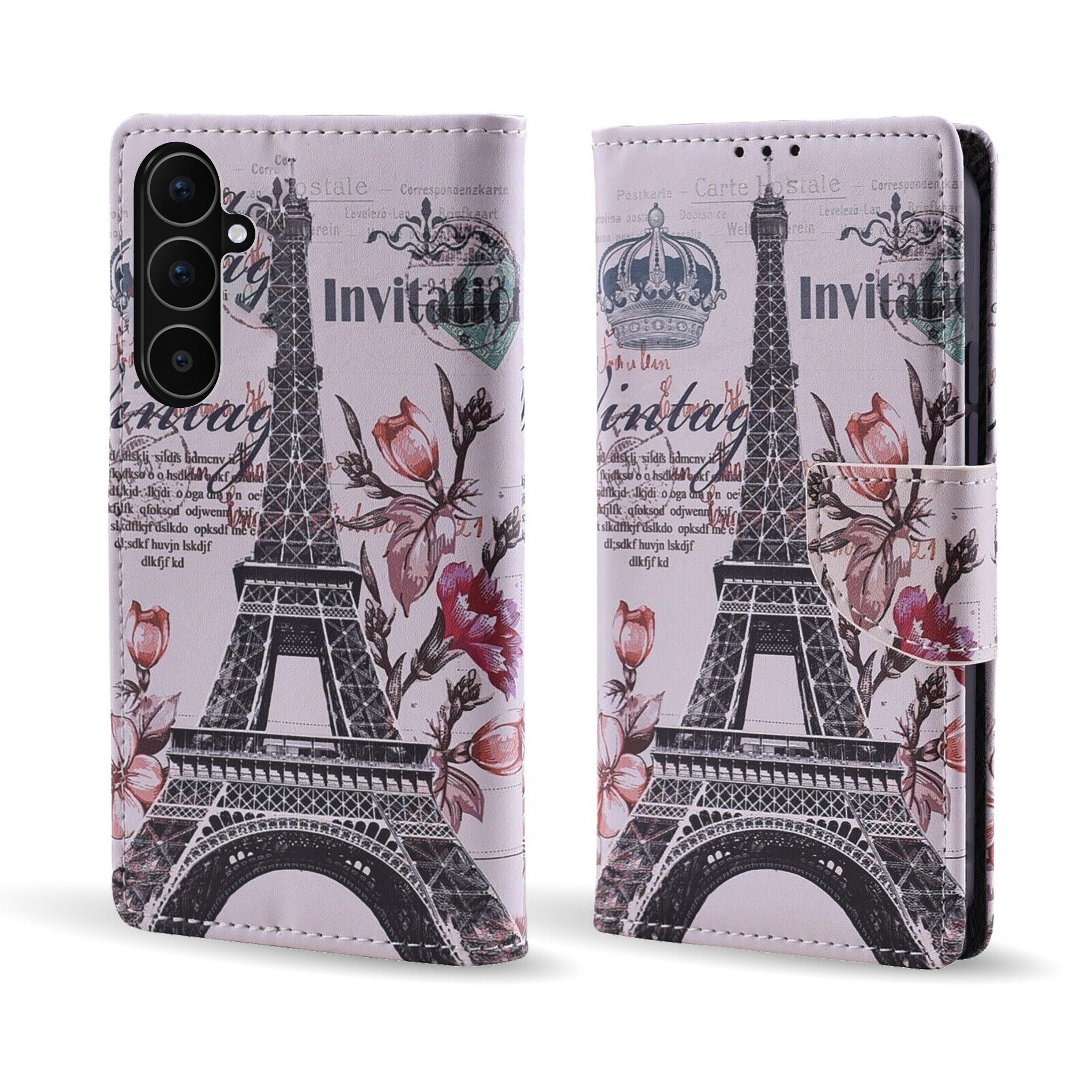 Eigenschaften | Bookcase, Smartstand, Flipcase, Magnetisch, Etui-Case, Hülle, Schutzhülle, Magnet-Etui, Handytasche, Cover, Flower, Blumen, Muster, Eiffelturm |