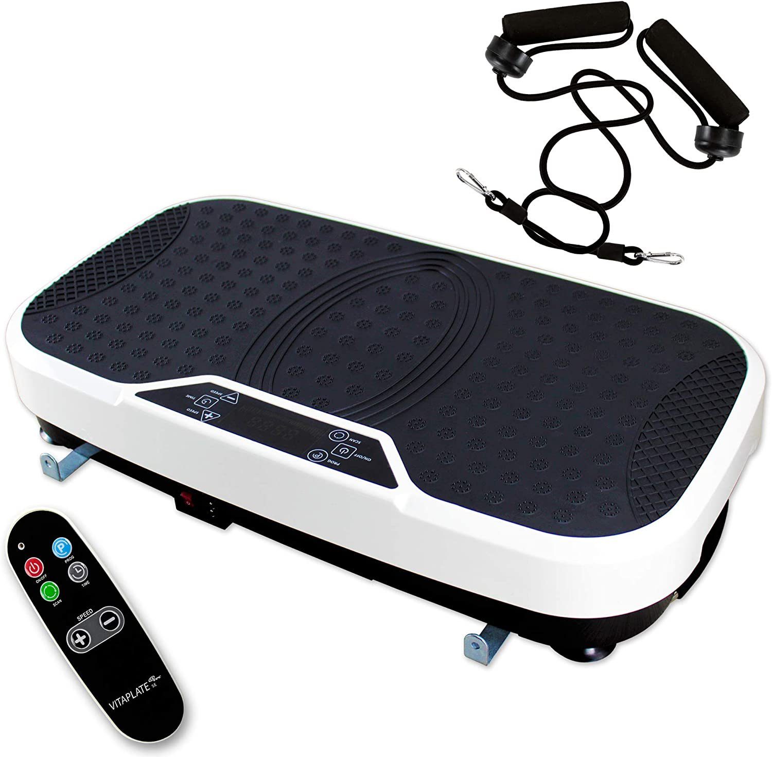 Vitaplate SE – Vibrationsplatte mit 20 Intensitätsstufen, 3 Programmen und 14 mm Amplitude für gelenkschonendes Ganzkörpertraining zuhause. Große Trainingsfläche und Fitnessbänder für ein effektives Workout.