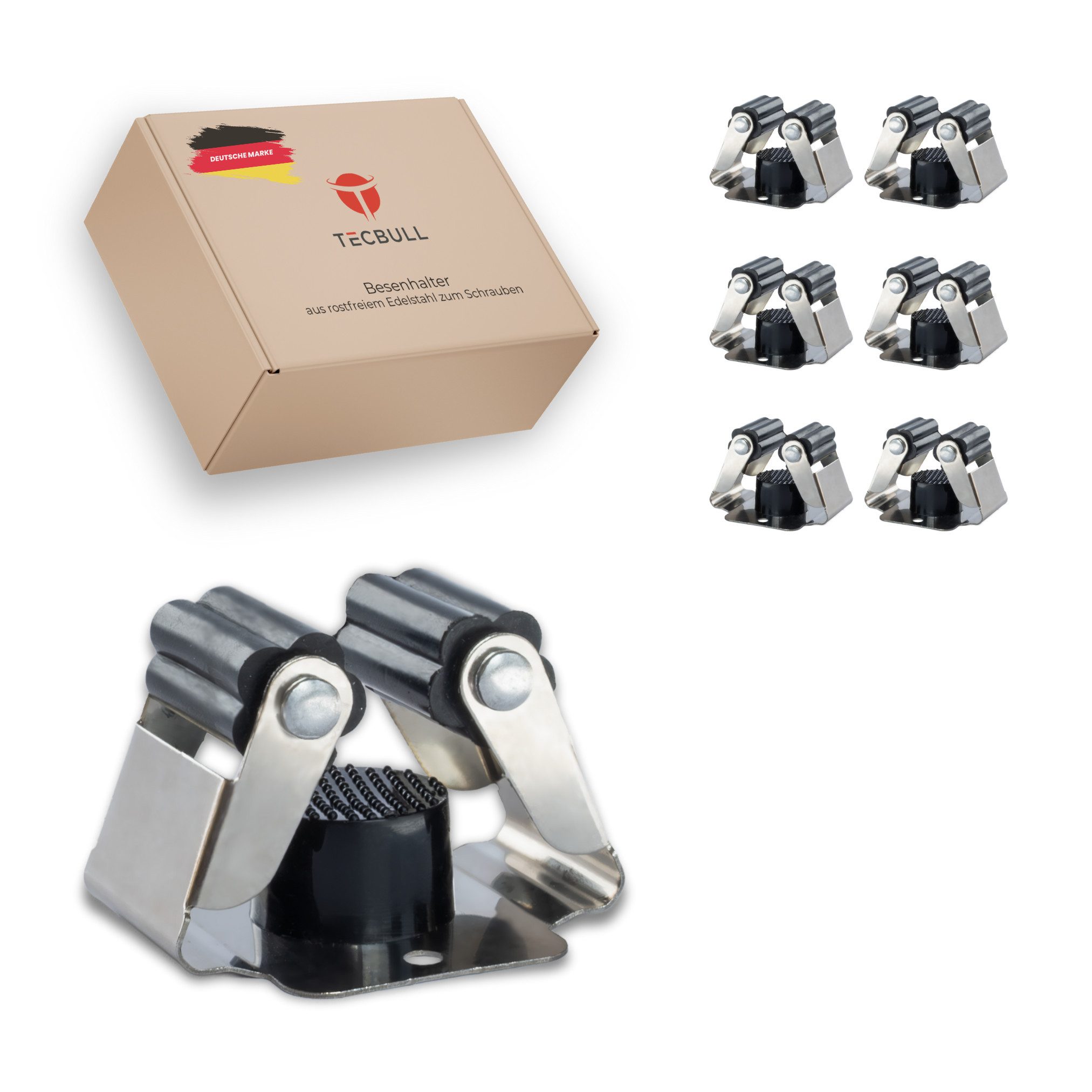 TECBULL Besenhalter Wand aus rostfreiem Edelstahl inkl. Montagesätzen für Schraubbefestigung.