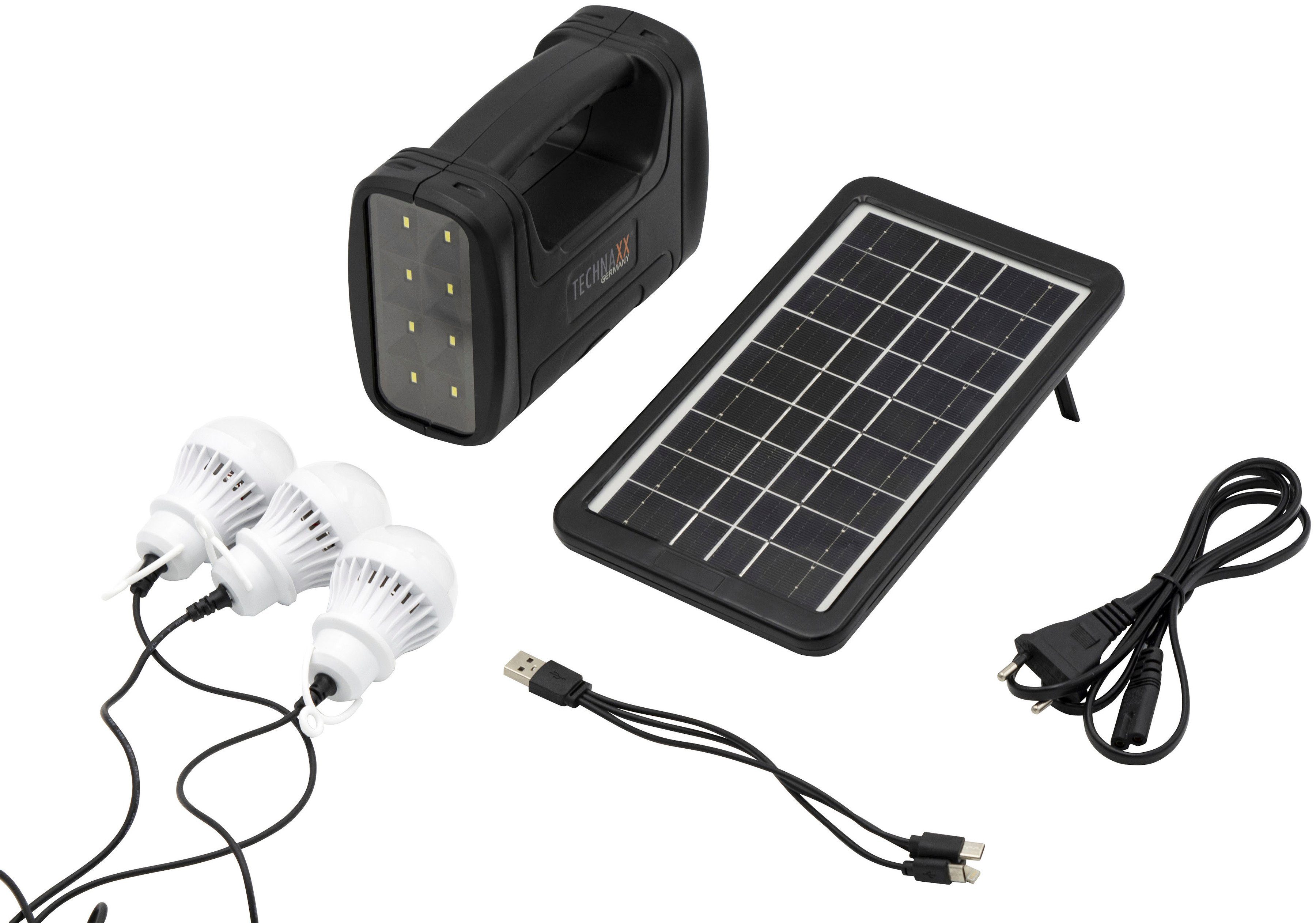 Lieferumfang | 3 Stk. LED-Lampen AC-Ladekabel Gebrauchsanleitung Powerstation Solarpanel 3W USB-Ladeadapter |