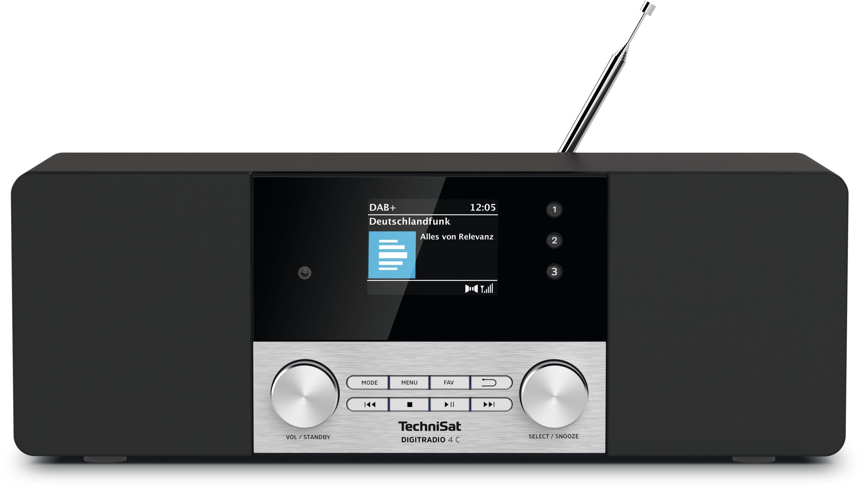 Lust auf rauschfreies DAB+ Radio in hochklassiger Stereoqualität Made in Germany? Das DIGITRADIO 4 C bietet sogar mehr. Neben DAB+ und UKW, empfängt das Digitalradio kabellos über Bluetooth auch Audiostreams von Mobilgeräten. Dank der beiden jeweils 10 Watt starken Stereolautsprecher vom deutschen Soundspezialisten ELAC verwandelt sich dann jeder Raum in eine kleine Diskothek. Aber auch leise Töne kommen hier besonders gut zur Geltung, wenn man über den Equalizer den perfekten Klang für die jeweilige Musikrichtung einstellt. Die Zusatzinformationen über das laufende Programm sowie Album-Cover oder ergänzende Bilder werden über das große 2,8 Zoll Farbdisplay angezeigt. Das DIGITRADIO 4 C verfügt über ein dimmbares Display sowie praktische Wecker- und Sleeptimer-Funktionen. Die Bedienung erfolgt bequem über zwei große Einstellregler oder die mitgelieferte Fernbedienung.