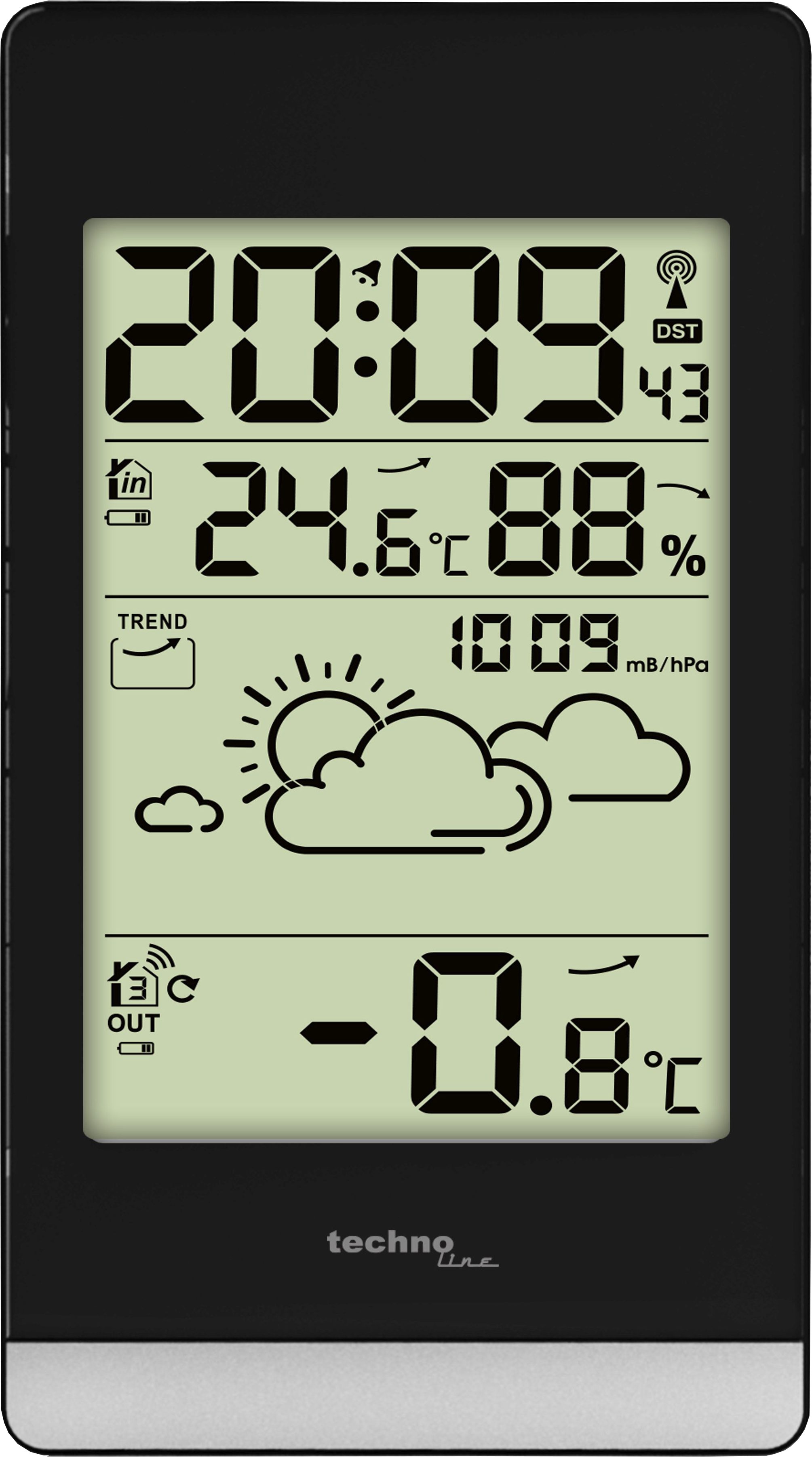Klimafunktionen | Frostalarm Temperaturanzeige Luftfeuchteanzeige Wettervorhersage Bis zu 3 Außensender empfangbar |