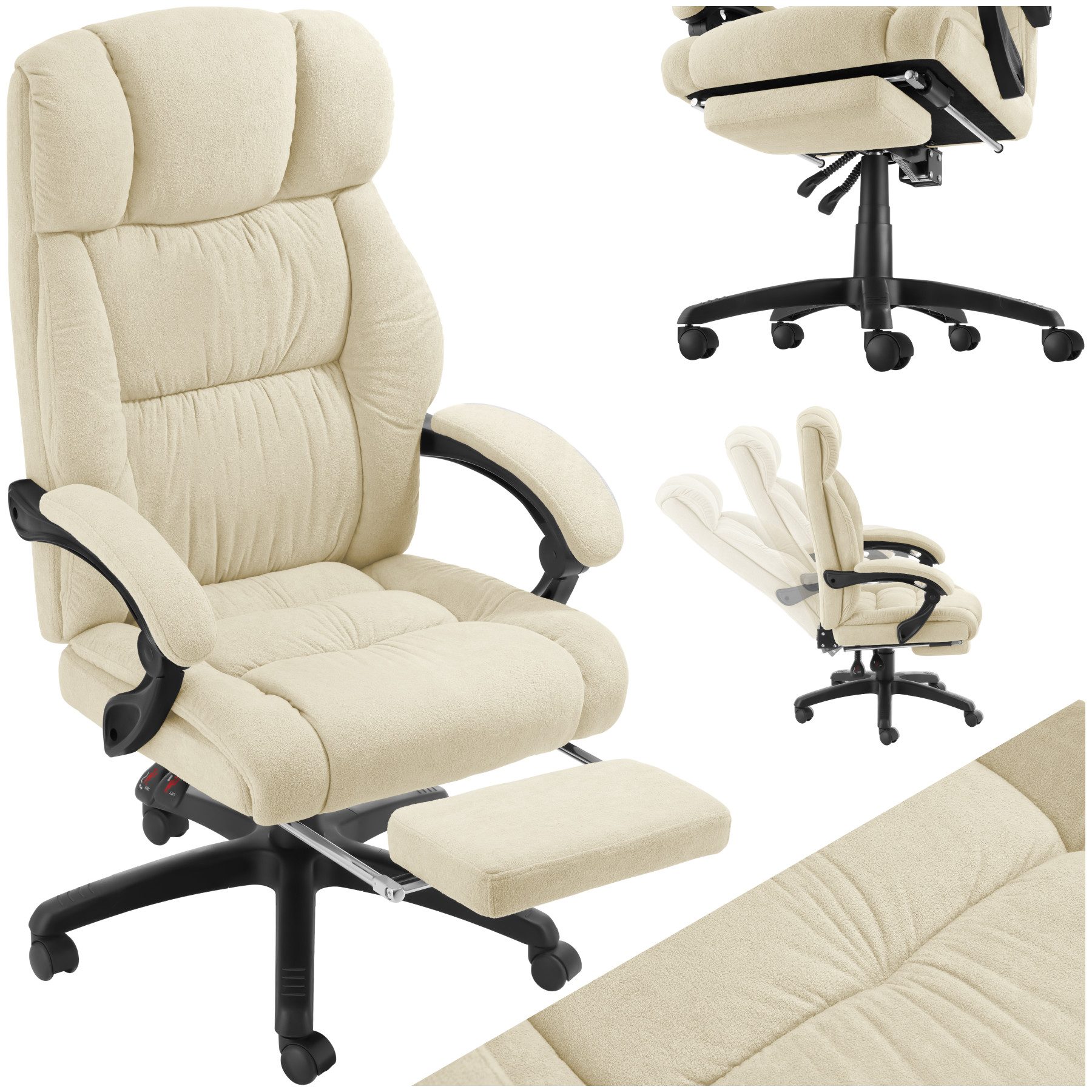 Neben der superdicken Polsterung versprechen die elegant geschwungenen Armlehnen und der kuschelige Velours ein Sitzgefühl der Extraklasse. Durch die hochwertige Gasdruckfeder lässt sich die Höhe des Chefsessels zudem optimal an Deine Bedürfnisse anpassen. Das solide Fußkreuz mit bodenschonenden Doppelrollen gewährleistet außerdem einen sicheren Halt und macht den Stuhl leise und flexibel.