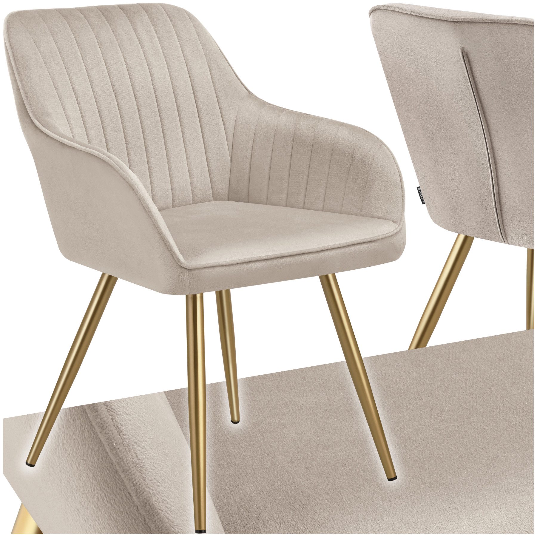 Entdecke den Esszimmerstuhl Marilyn von tectake, der mit seinen goldenen Stahlbeinen und dem edlen Steppmuster überall exklusive Akzente setzt.