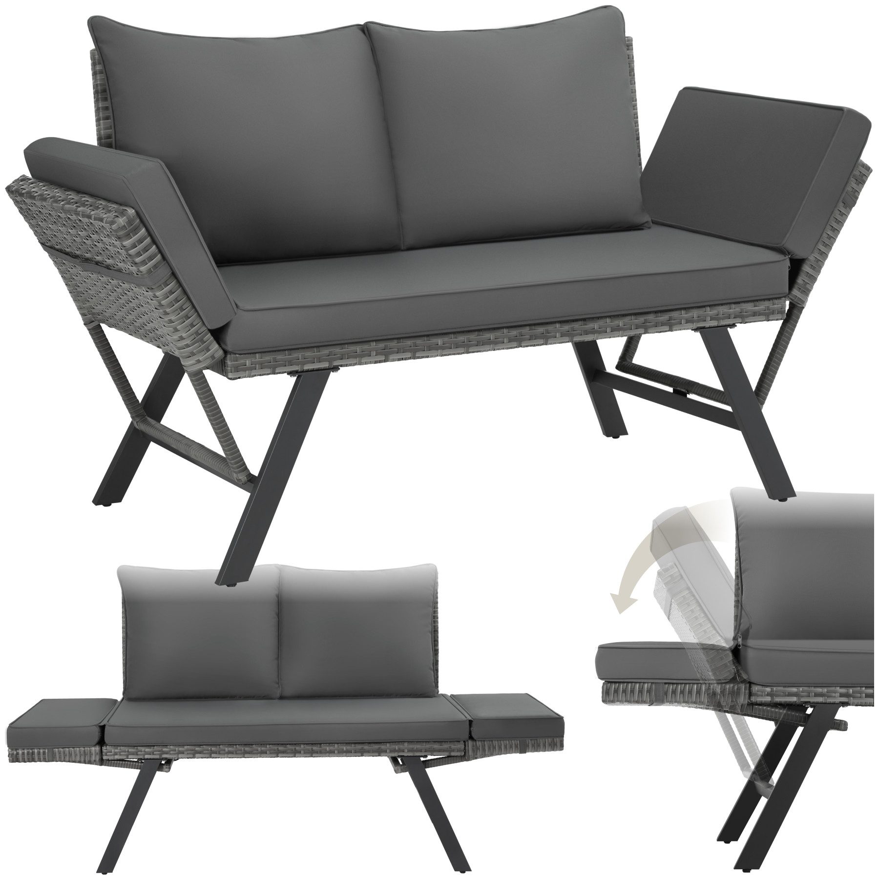 Das Rattan-Loungesofa Sintra von tectake vereint Design und Komfort für Deinen Außenbereich. Das wandelbare Multitalent passt sich dabei stets Deinen Bedürfnissen an und bietet mit seiner 2-in-1-Funktion verschiedene Einsatzmöglichkeiten für einzigartige Relaxmomente.