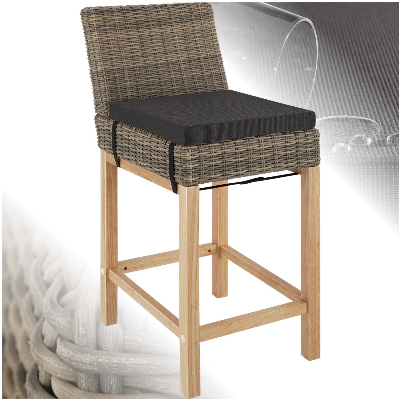 Lieferumfang | 1x Rattan-Barstuhl mit Sitzpolster, 1x Montagematerial, 1x Montageanleitung |