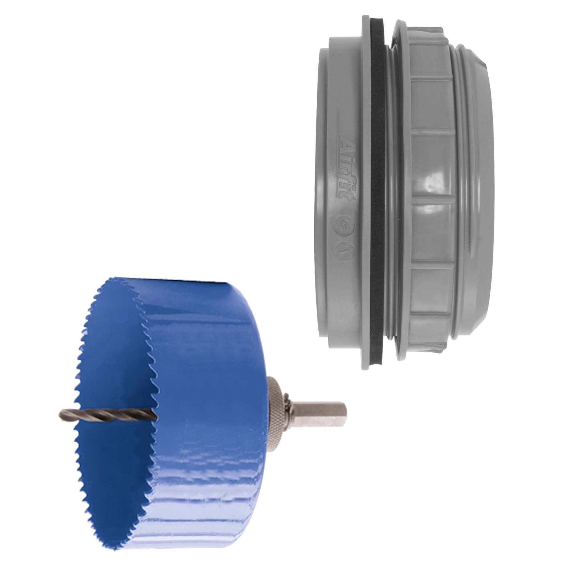 tecuro Kombi-Set bestehend aus HT- Anschraub-Muffe DN 90 grau, inkl. passendem Kreisschneider Ø 121 mm