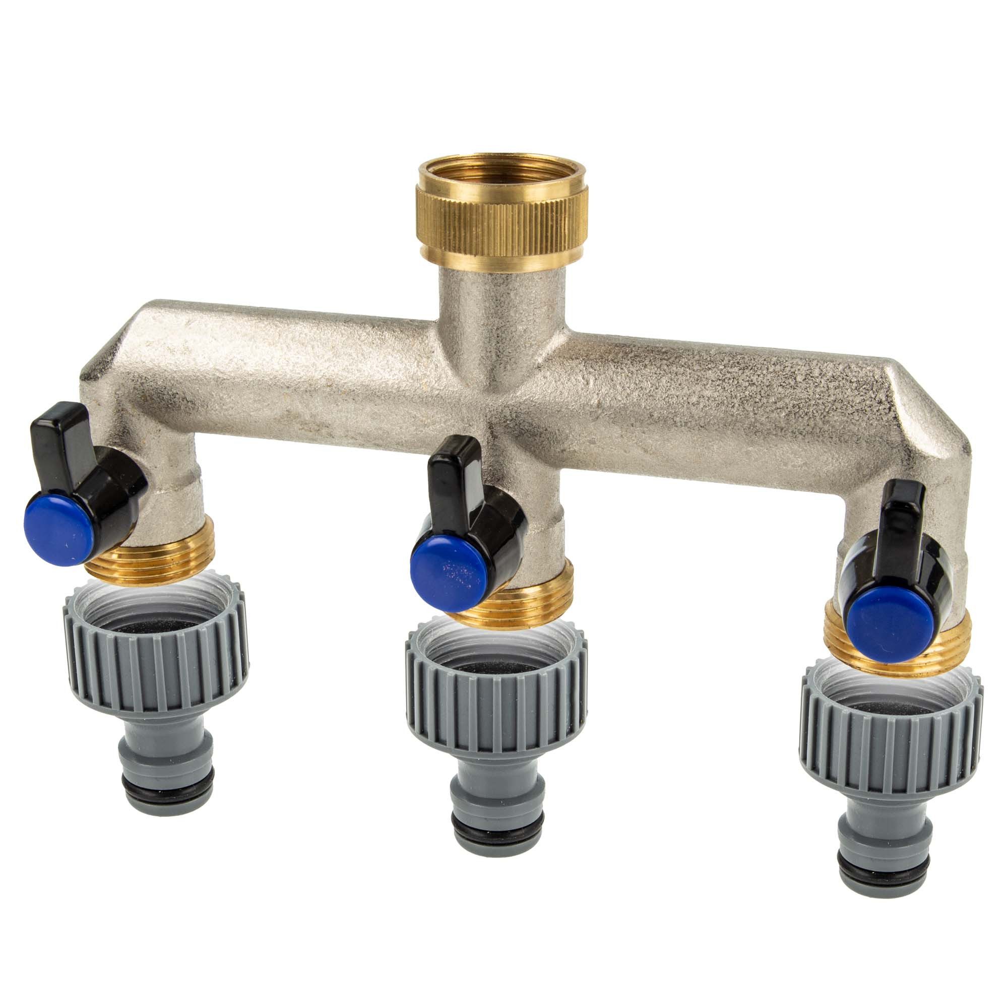 • tecuro 2-Wege Verteiler mit 2 x Kugelventil und passenden Steckkupplungen // Ideal zum Verteilen von Wasser ohne zusätzliche Installation
