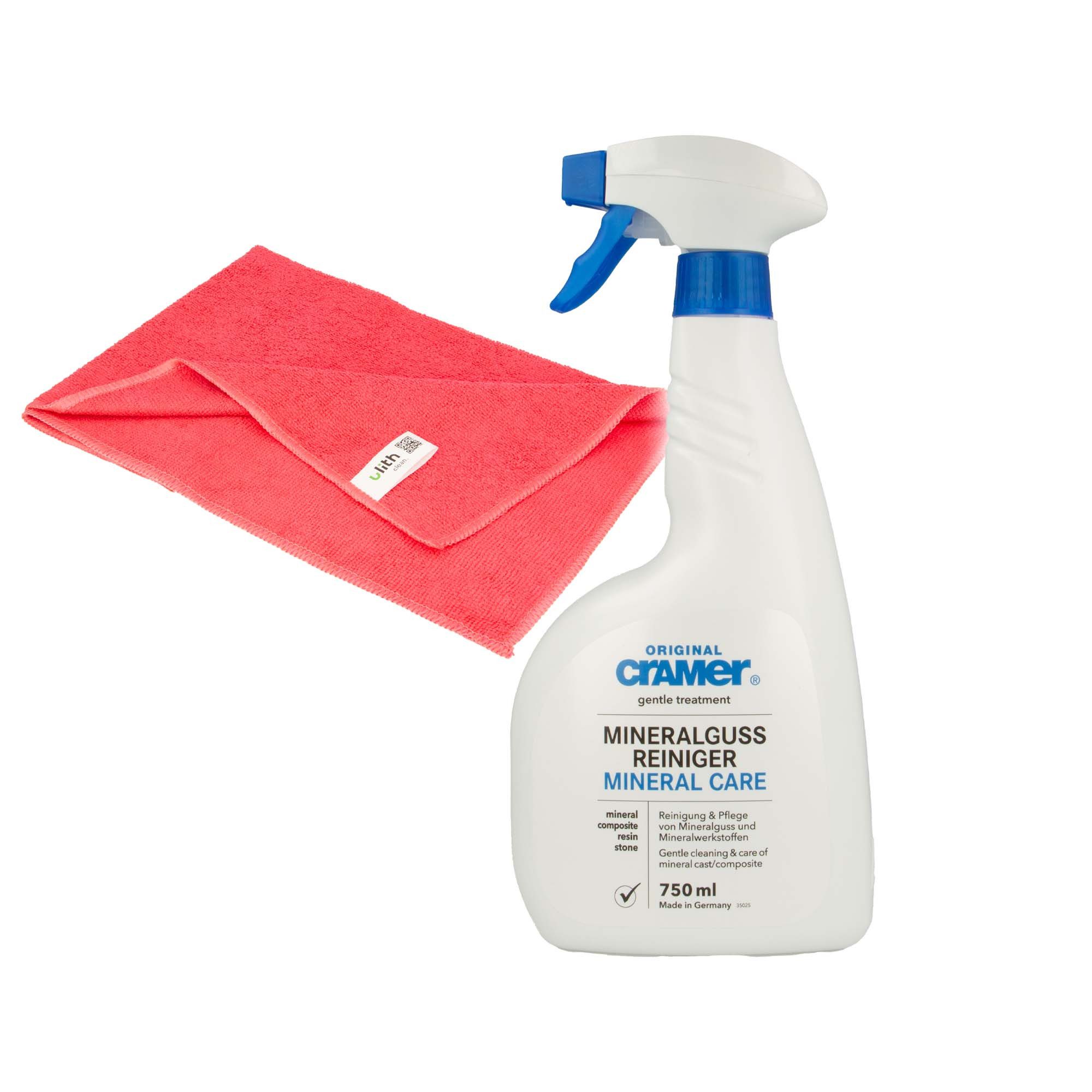 Damit das Wasser auch bei großen, liegenden Flächen mit geringem Gefälle, wie z.b. bei geraden Waschbecken gut abläuft und keine Kalkrückstände hinterlässt, ist es erforderlich, dass die gereinigte Oberfläche möglichst jeden Tropfen abtransportiert. In etwa so, wie in der Autowaschanlage. Einen vergleichbaren Effekt erzielt der Mineralguss-Reiniger. Das Spezialmittel entfernt schonend Kalk-, Seifen- und Schmutzablagerungen und verleiht der Sanitärausstattung bei regelmäßiger Anwendung einen dauerhaften Schutz und die Oberfläche wird schonend und kratzfrei gepflegt.