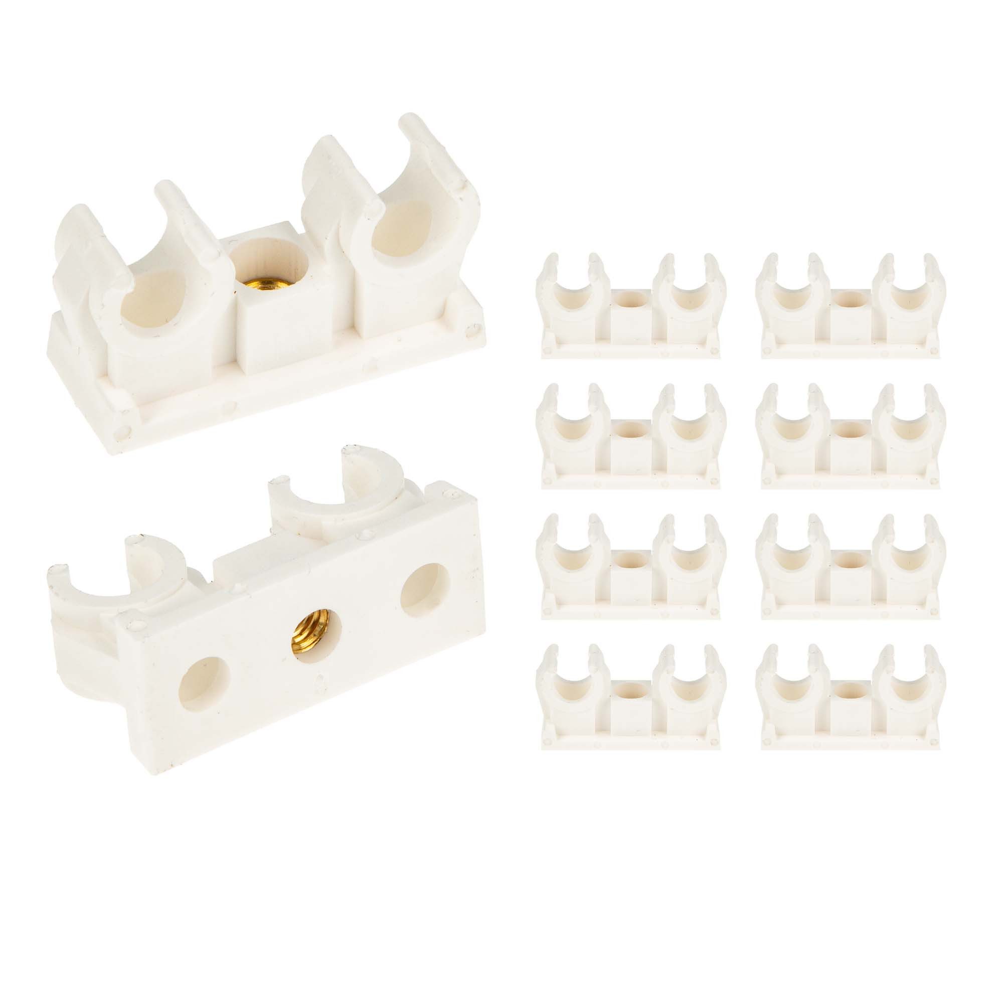 Die Bilder zeigen einen Rohrclip in Verbindung mit einem Kupferrohr bzw. verchromten Kupferrohr.