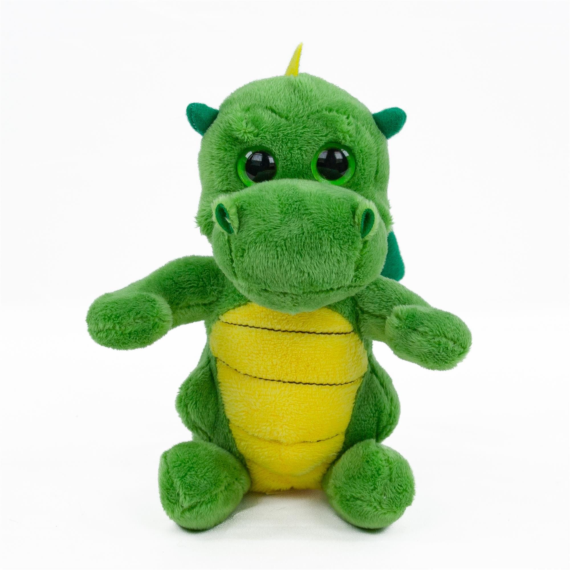 Die Kleinen haben dieses süße Kuscheltier sicher sofort gern. Mit großen Augen schaut der flauschige Drache voller Neugier in die Welt. Das Plüschtier hat ein weiches, grünes und gelbes Fell, gelbe Zacken vom Kopf bis zum Schwanz und kleine grüne Flügel. Es steht und scheint bereit, loszufliegen. Abends bekommt es seinen festen Platz, um beim Einschlafen dabei zu sein.