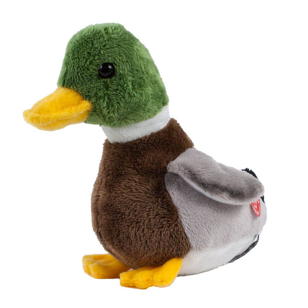 Ente Plüschtier 18 cm, kuschelweicher Plüsch, braun/grün/grau, waschbar bei 30°C, mit authentischer Stimme, LxBxH: 12 cm x 8 cm x 18 cm (Batterie nicht wechselbar)