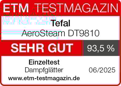 Der Tefal AeroSteam DT9810 erzielt im Einzeltest des „ETM TESTMAGAZINS“ das Gesamtergebnis „sehr gut (93,5 %)“. Die „sehr gute“ Leistung glänzt bei jeglichen Stoffarten. Das Gerät hat einen sehr großen Aktionsradius, die Form des Handteils ist sehr angenehm, die Vorheizzeit ist sehr gering und die Tastenelemente sind „sehr gut“. Der Schallausstoß und der Stromverbrauch sind jeweils „gut“. Die Sicherheit ist sehr hoch. Außerdem ist der Dampfglätter hervorragend verarbeitet. Insgesamt ist das Gerät ein „praktischer Helfer“, der einem „mühelos zu faltenfreier Kleidung“ verhilft.