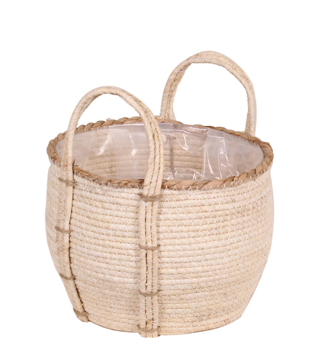 Dieser Pflanz- und Aufbewahrungskorb aus gewebtem Seegras ist in vier unterschiedlichen Größen erhältlich und durch die farbliche Absetzung ein optisches Highlight. Das verwendete Seegras stammt aus nachhaltigem Anbau. Der Korb eignet sich sowohl als Pflanzkorb für deine Lieblingspflanzen oder einfach als dekorative Aufbewahrung von Decken, Handtücher, Spielzeug, Schals und mehr. Die natürlichen Materialien in Kombination mit den Naturtönen verleihen dem Korb ein modernes Aussehen und passen perfekt zum Boho-Stil. Der Korb eignet sich perfekt für dein Wohnzimmer, Badezimmer, das Kinderzimmer oder den Eingangsbereich. Zum Schutz vor Feuchtigkeit haben die Körbe einen integrierten Polybeutel, der sich bei Bedarf auch leicht entfernen lässt. Gegenüber Rattan ist das Material Seegras weicher und flexibler. Da es sich um ein Naturprodukt handelt, sind kleine Abweichungen vom Produktbild möglich.