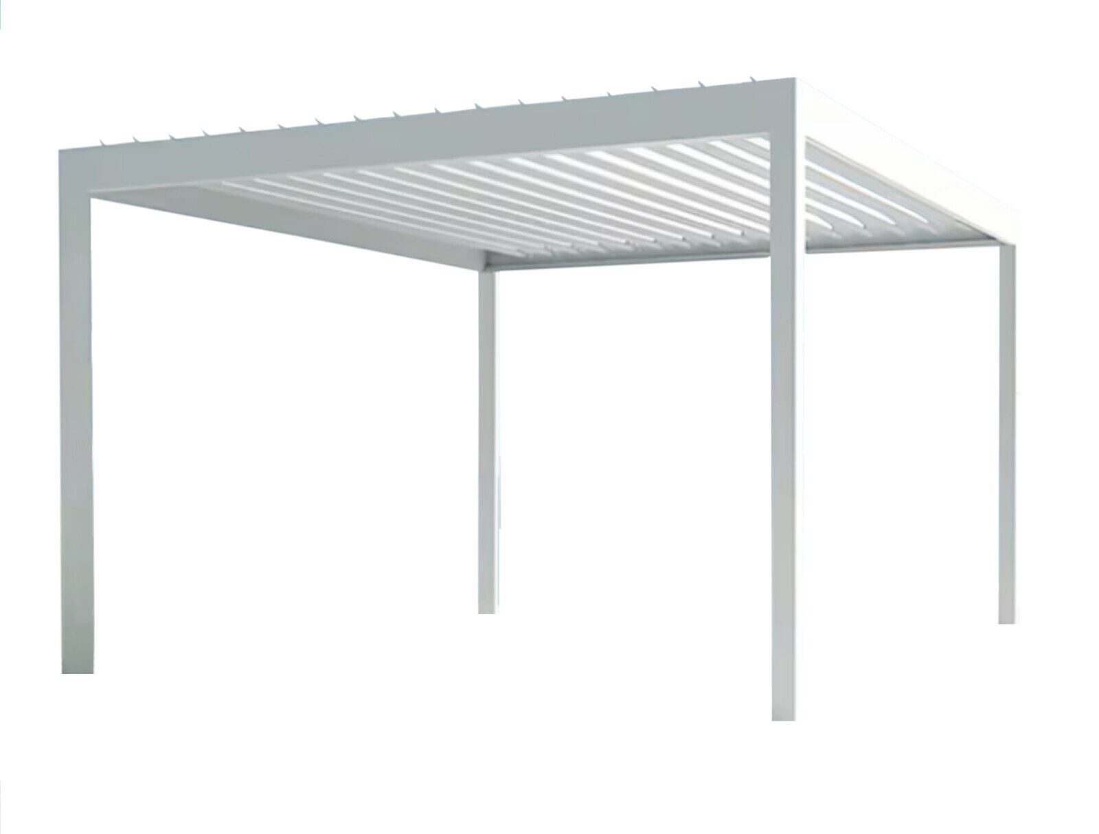 Die Pergola ist eine semipermanente Premium-Aluminium-Pergola mit doppelschichtigen innovativen Lamellen, Pfosten mit abgerundeten Ecken und LED-Beleuchtungssystem, die ihrem Außenbereich perfekten Schatten spendet. Sie besteht aus hochwertigem Aluminium, das Haltbarkeit und Stabilität der Struktur garantiert. Dank der verstellbaren oberen Lamellen können Sie zwischen Sonnen- und Schattenplätzen wählen. Kein lästiges Kurbeln mit der Hand, das Dach kann elektrisch per Fernbedienung geöffnet und geschlossen werden