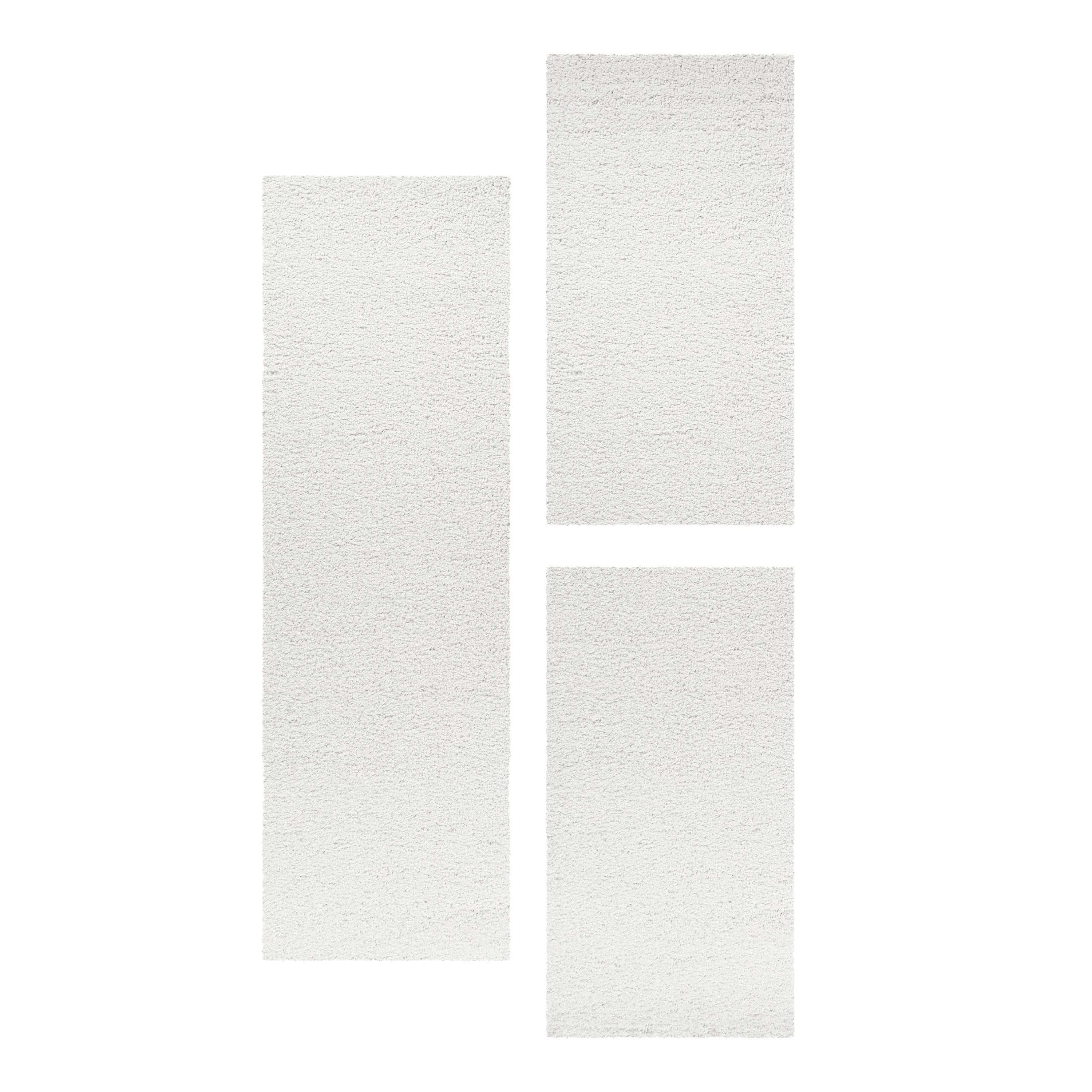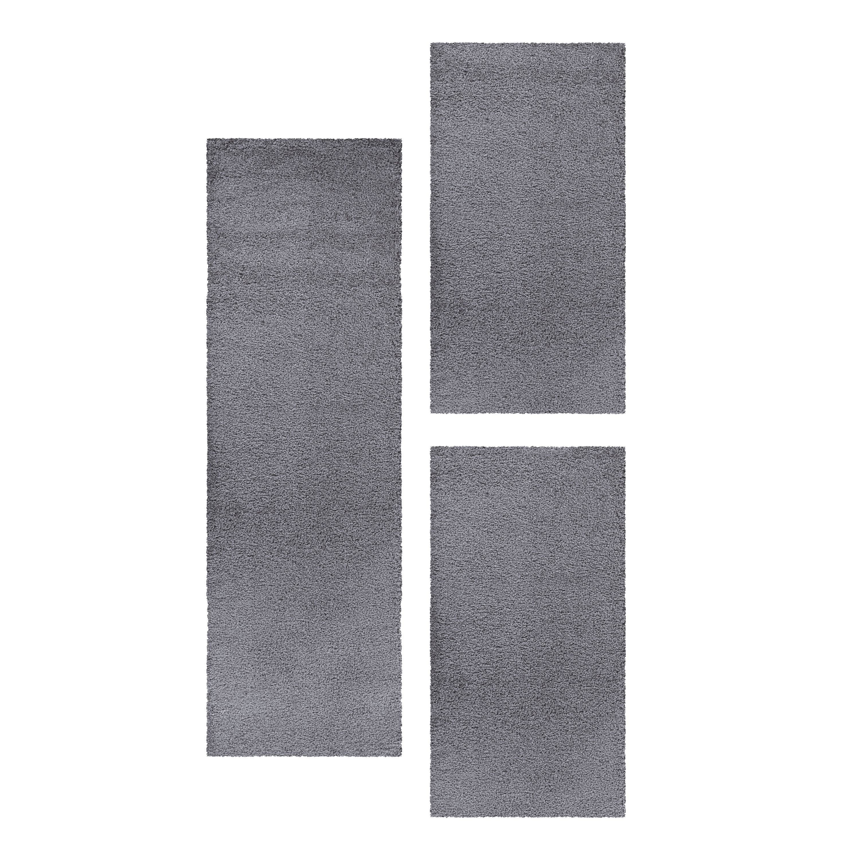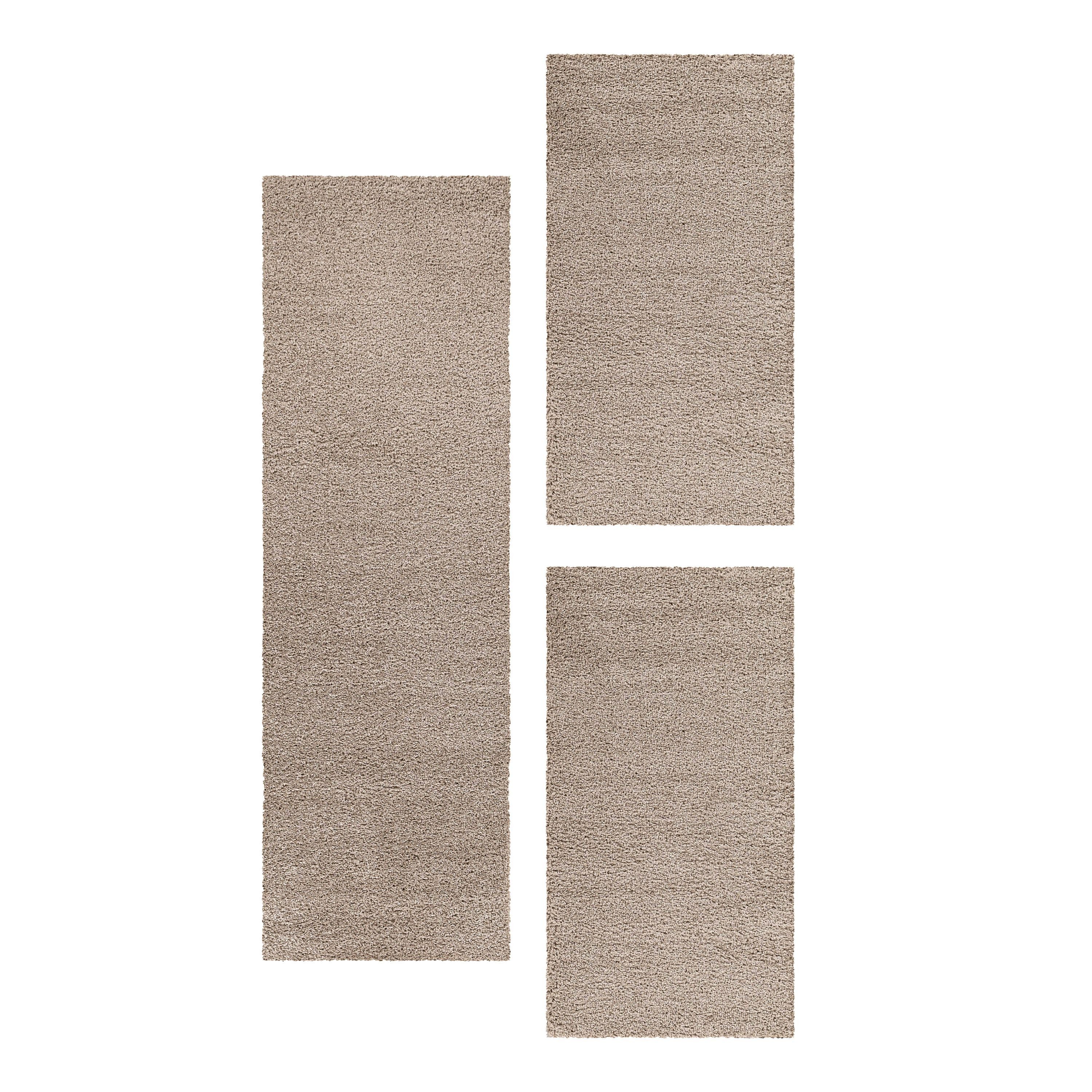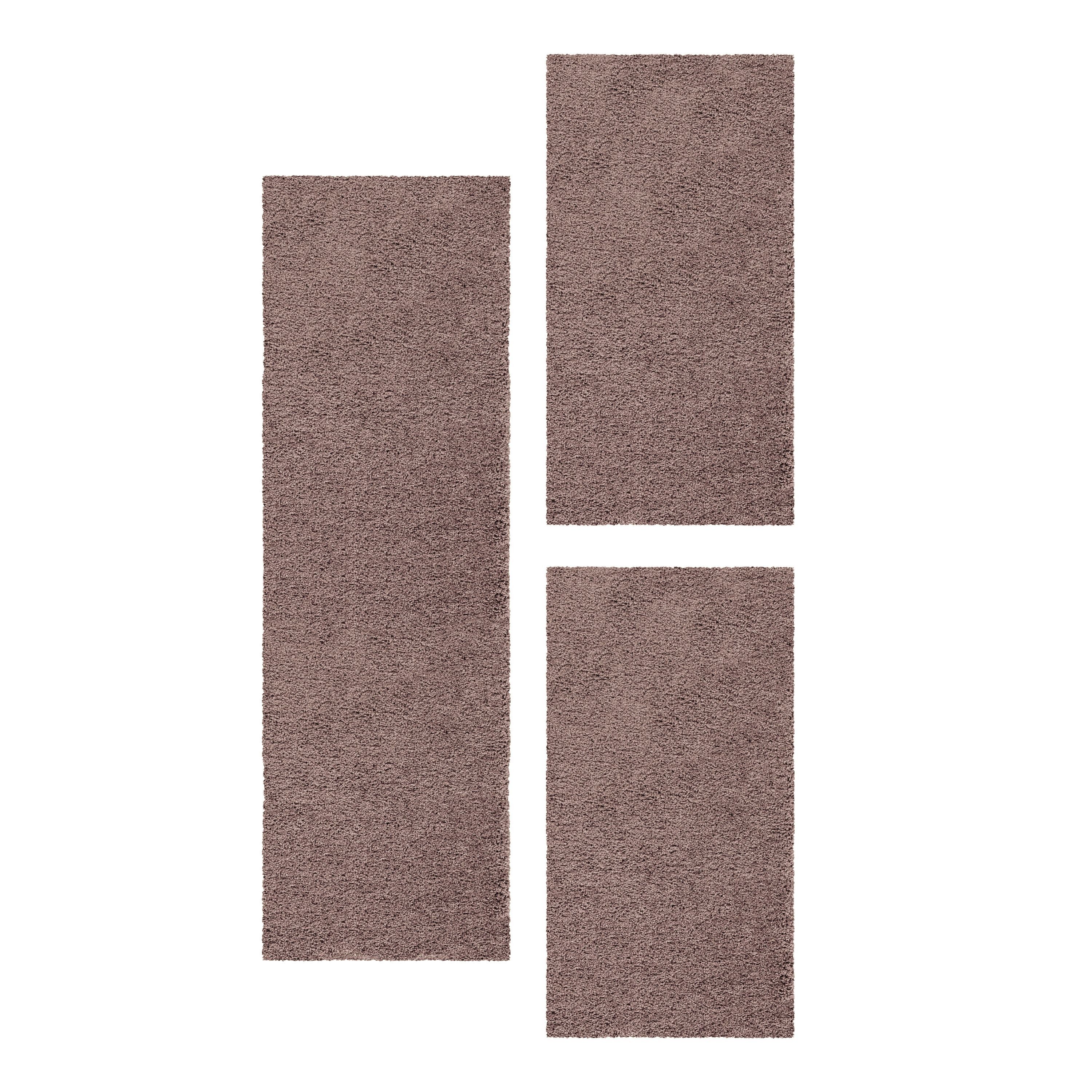 3-Teiliges Hochflor-Läufer-Set: Beinhaltet einen Hauptteppich und zwei Läufer in einfarbigem Design, perfekt für ein gemütliches Schlafzimmer.