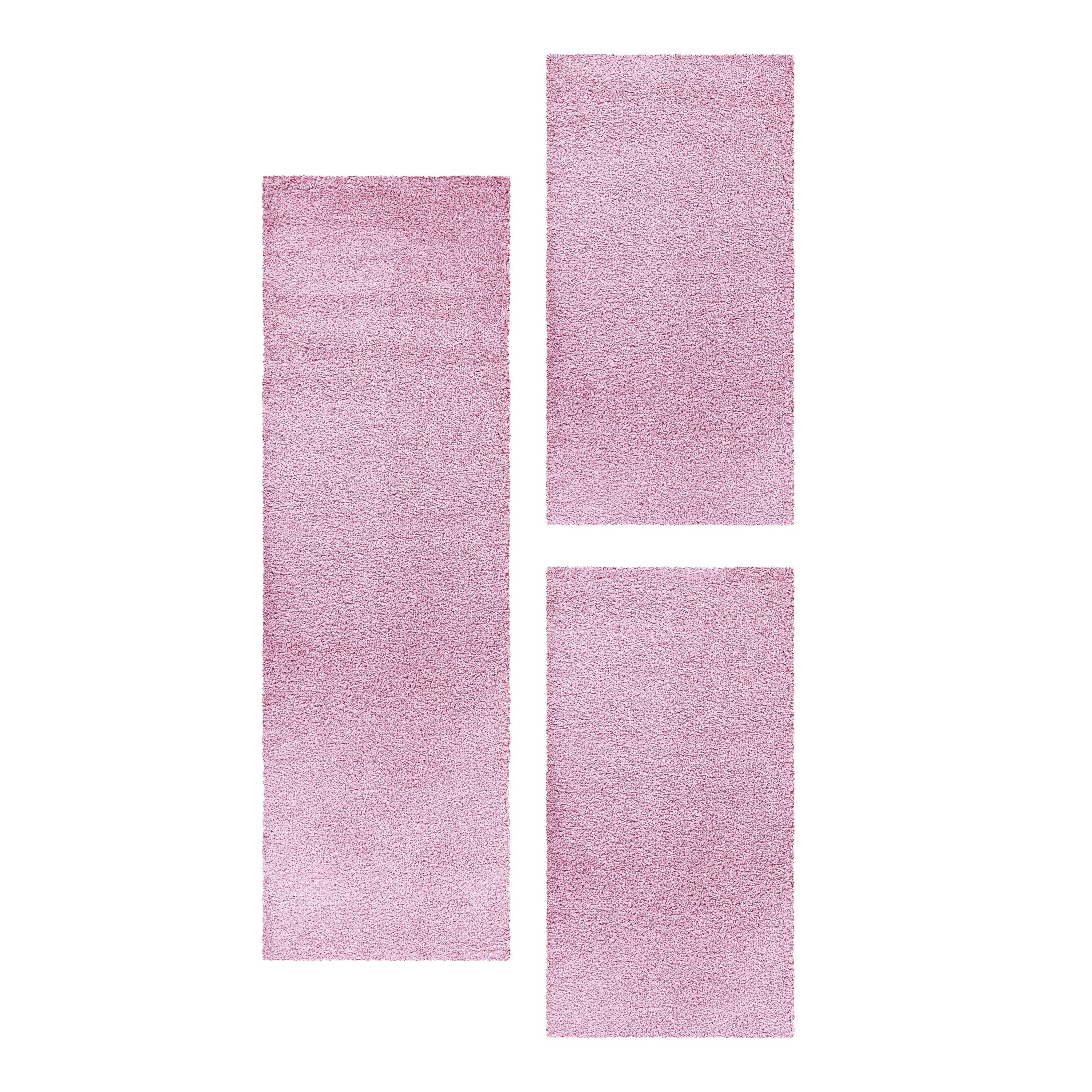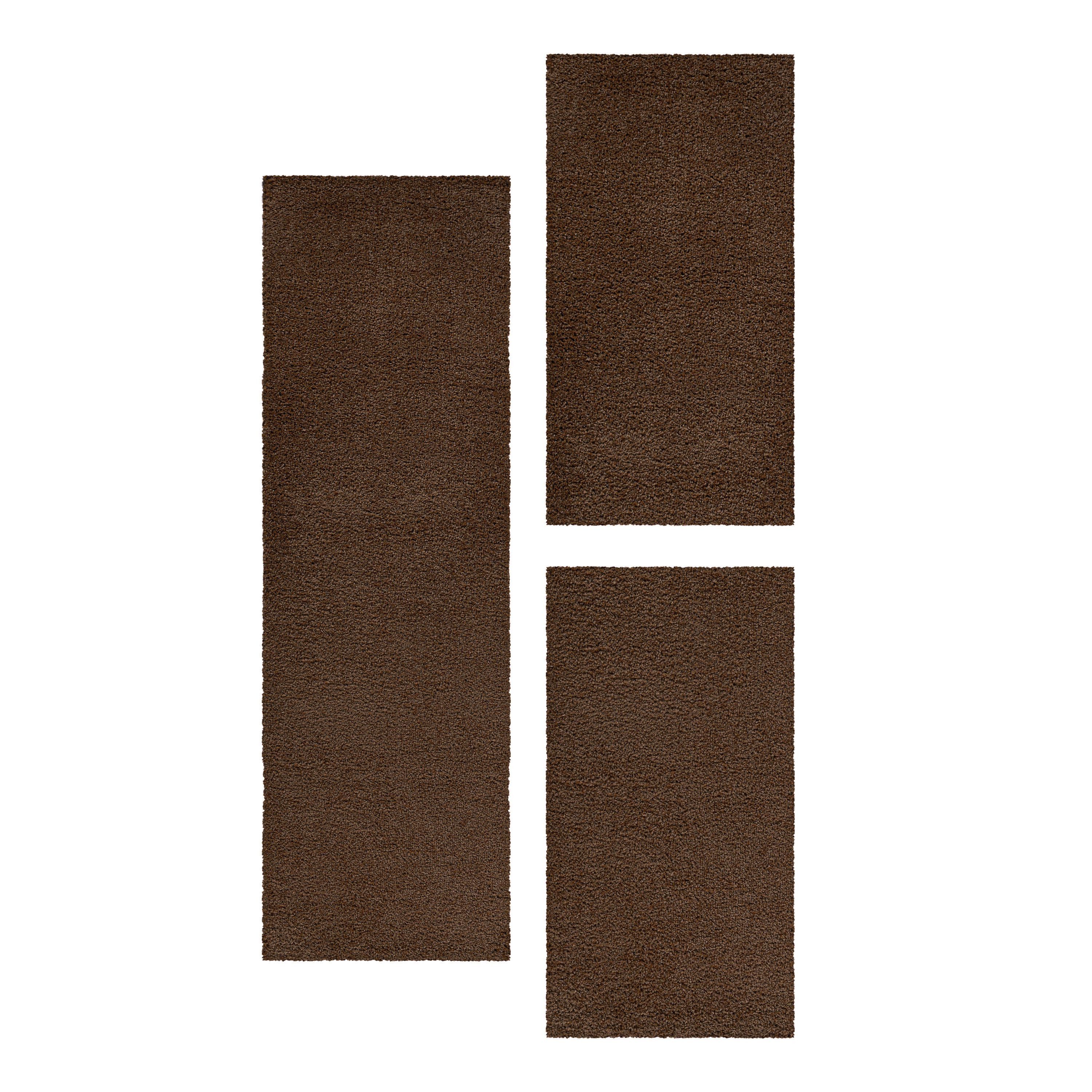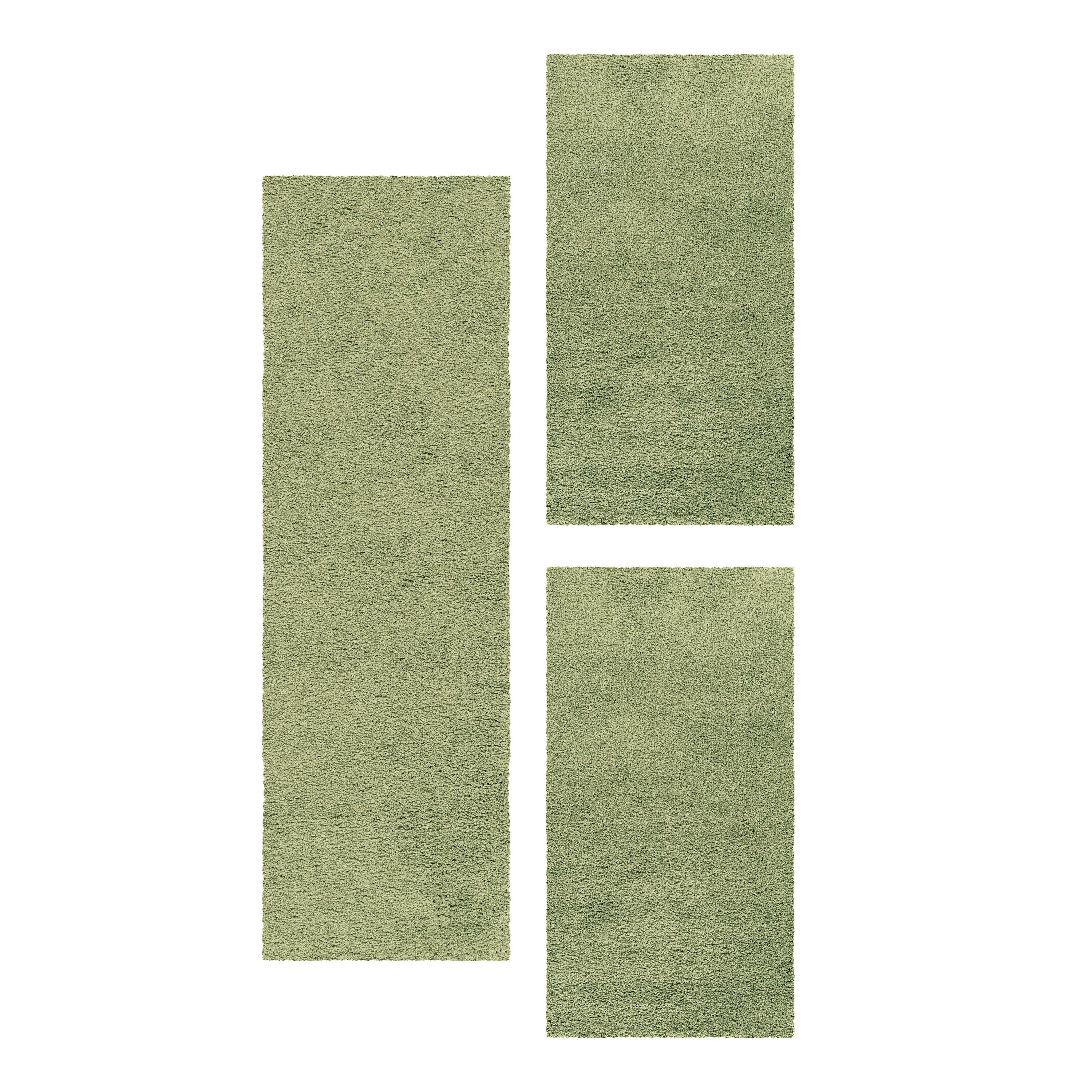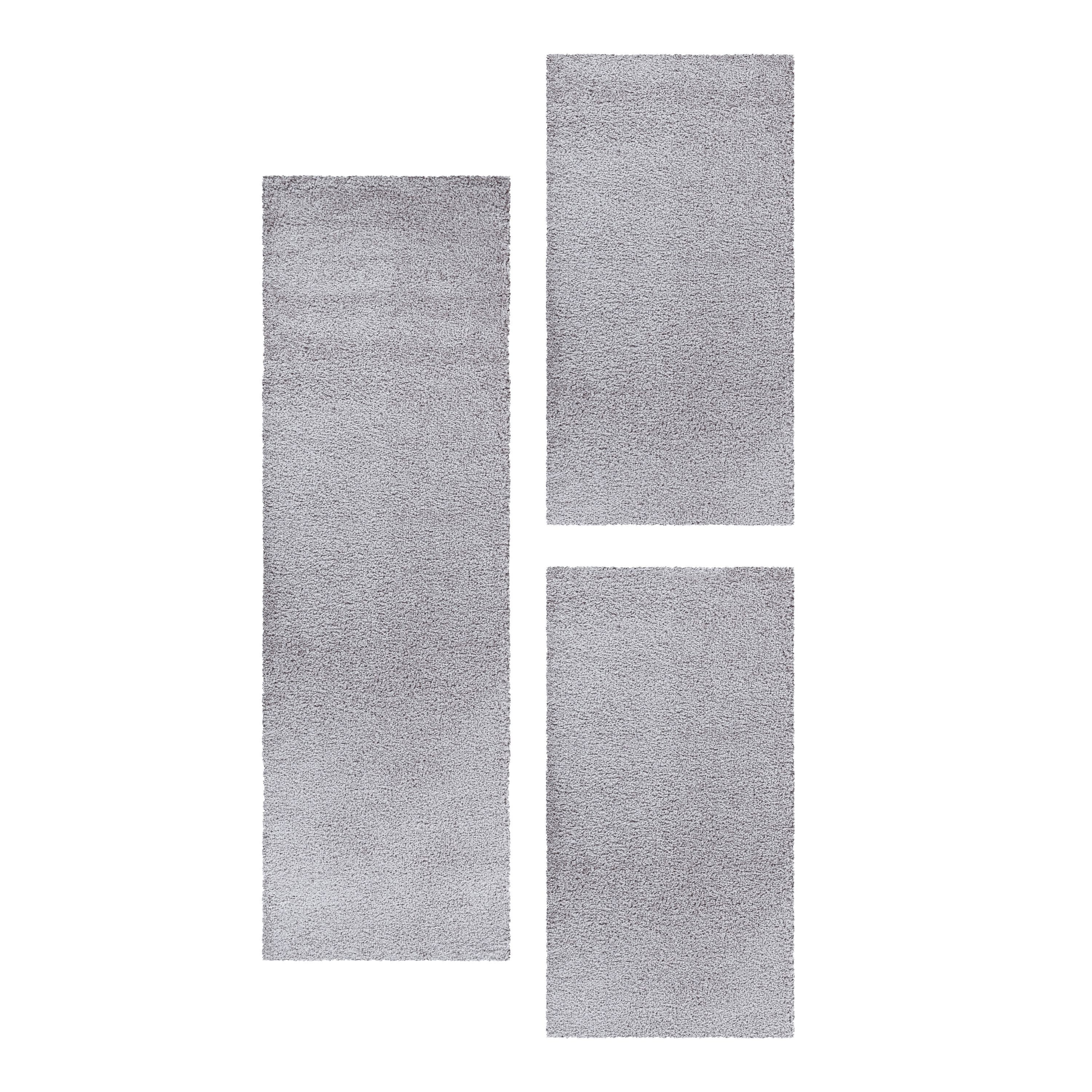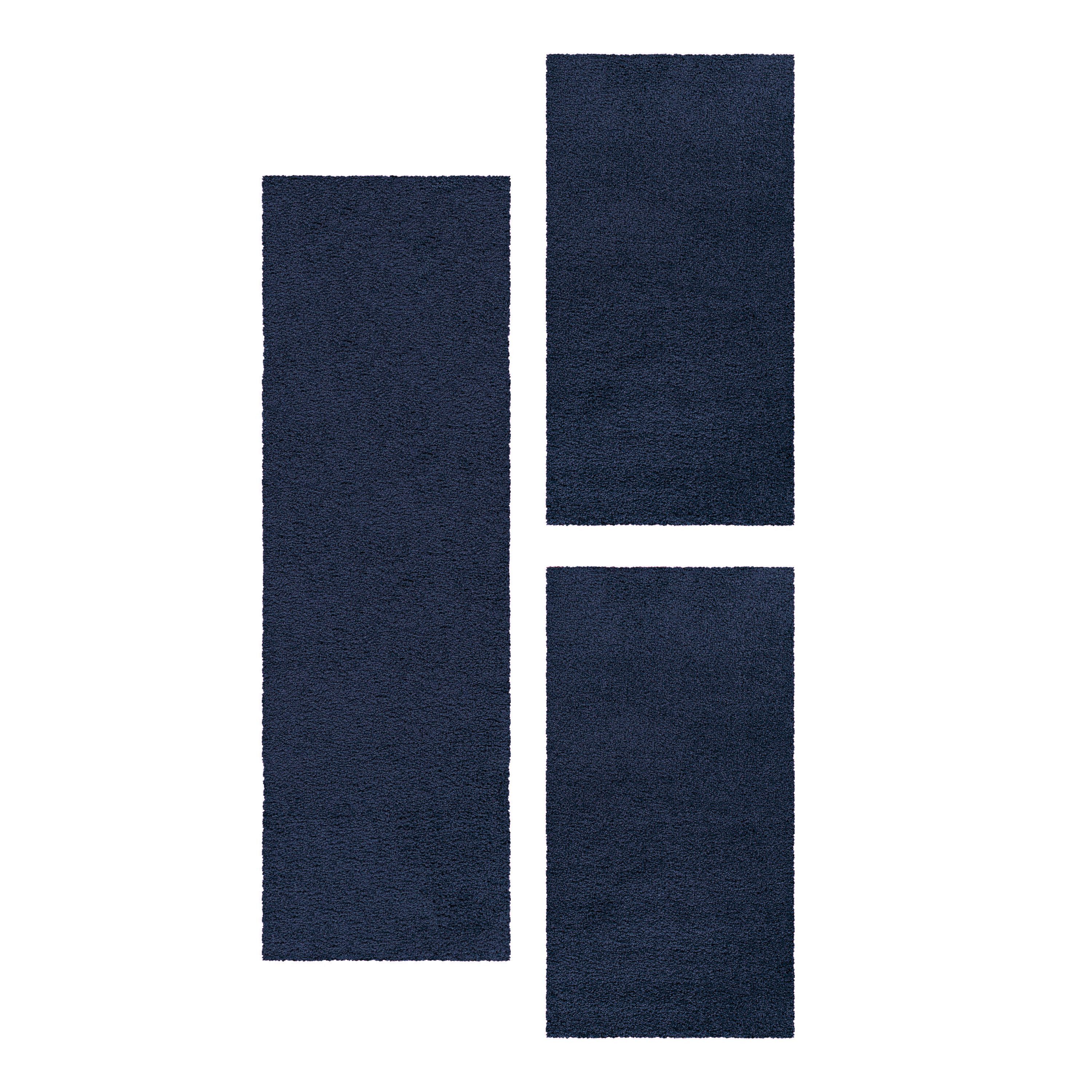 3-Teiliges Hochflor-Läufer-Set: Beinhaltet einen Hauptteppich und zwei Läufer in einfarbigem Design, perfekt für ein gemütliches Schlafzimmer.
