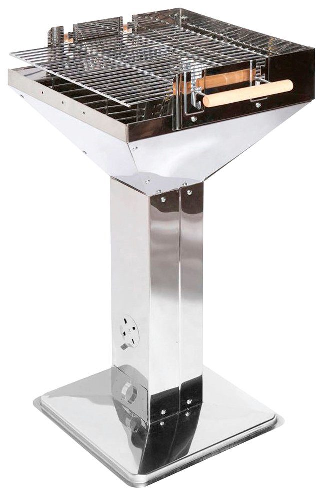 Hasta la vista, Baby! Um den Holzkohlegrill »Vista« zu bedienen, müssen Sie kein Terminator sein, denn er ist kinderleicht zu bedienen. In der höhenverstellbaren Grillsäule sind Ascheauffangbehälter und Lüftungsschieber zum Regulieren der Luftzufuhr untergebracht. Wird mehr Sauerstoff zugeführt, zieht die Glut schneller durch, optimal für scharfes Anbraten und knusprige Grillergebnisse. Der Auffangbehälter sammelt die Asche – und macht die anschließende Reinigung denkbar einfach.