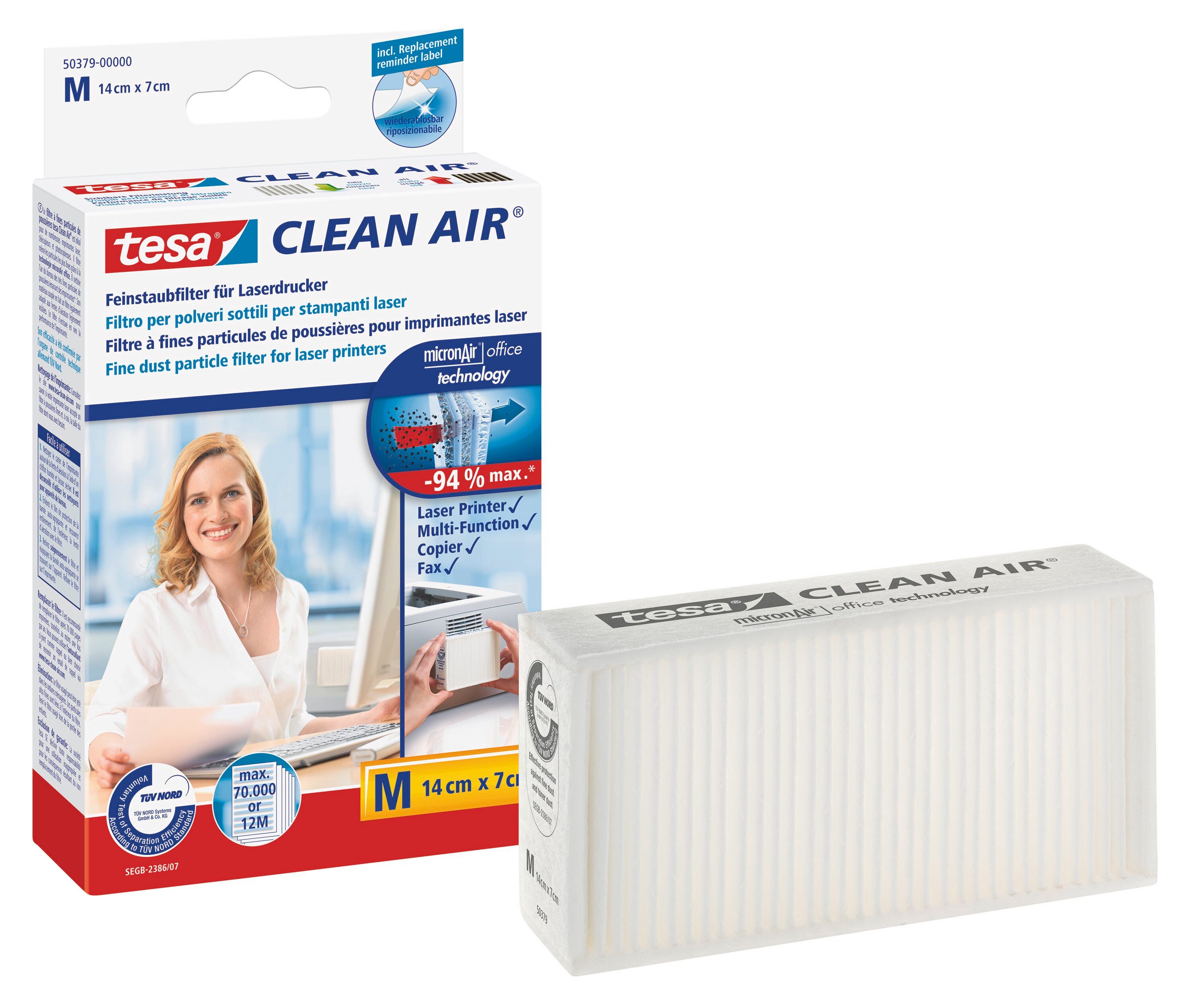 TÜV-geprüfte Überlegenheit: Der tesa Clean Air Feinstaubfilter lässt 6x weniger Feinstaubpartikel durch als vergleichbare Clean Office)