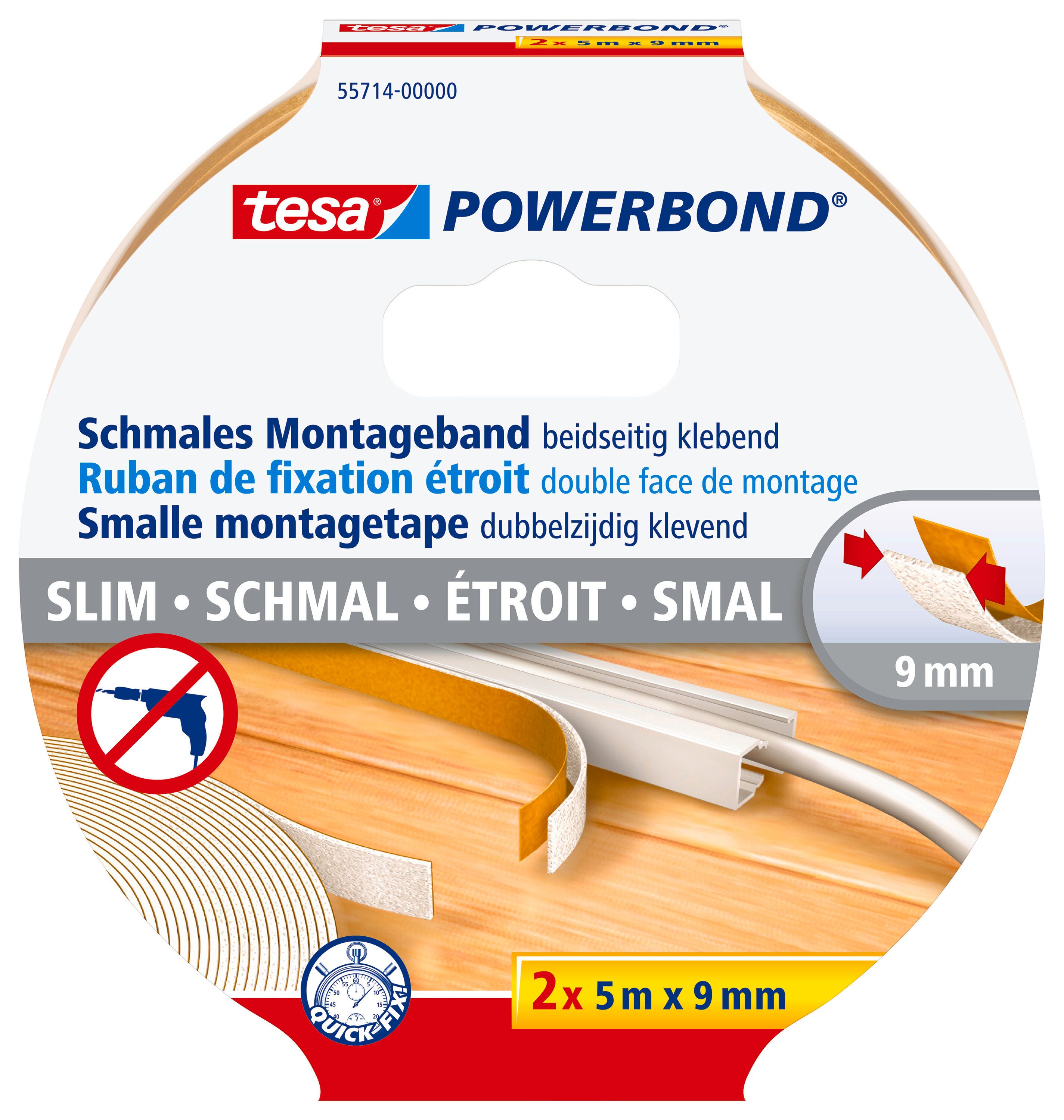 Das besonders schmale tesa Powerbond® ist selbstklebend und eignet sich für sichere, schnelle und permanente Befestigungen im Innenbereich, wie z.B. Kabelkanäle, Fußbodenleisten, Dekorationen und vielem mehr. Es ermöglicht einen dauerhaften und sicheren Halt ohne Schrauben, Dübel oder Nägel. Das 9 mm breite Montageband passt sich teilweise dem Untergrund an und gleicht kleinere Unebenheiten aus. Wie alle Powerbond®-Produkte verfügt auch das schmale Montageband über eine hohe Klebeleistung.Das Montageband ist für einen permanenten Einsatz vorgesehen. Damit Sie langfristig Freude daran haben, sollten Sie bei der Anwendung die Hinweise in der Описание товара (мы ещё работаем над переводом, извините за неудобство) genau befolgen. Einer der wichtigsten Tipps ist sicherlich, dass der Untergrund und das Objekt frei von Schmutz, Fett und Staub sein müssen, damit das Klebematerial seine maximale Halteleistung entfaltet. Das erreichen Sie z.B. mit Hilfe einer Bürste, eines flusenfreien Tuchs und einem silikonfreien Reinigungsmittel oder Spiritus. Des Впередen sollten Sie die Klebestreifen und das Objekt jeweils für mindestens fünf Sekunden fest andrücken. Besser Kleben statt Bohren - mit Powerbond® Gegenstände sicher befestigen und kreative Ideen umsetzen!