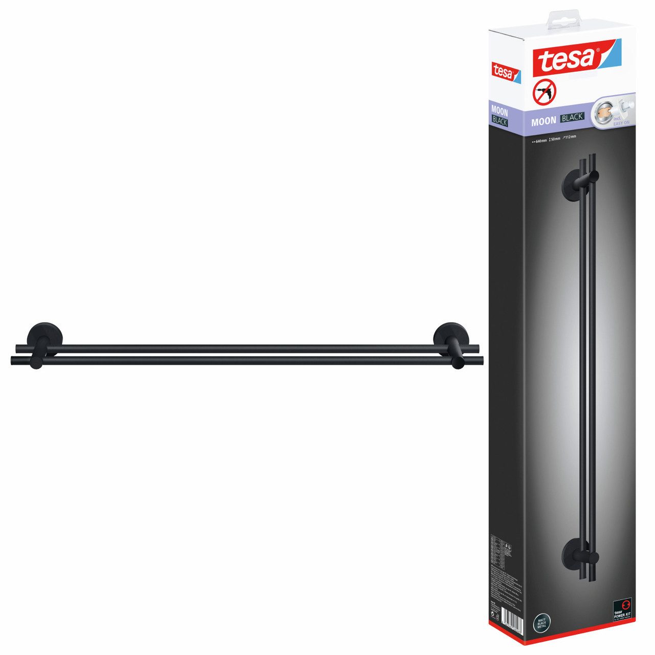 Die tesa® MOON BLACK Handtuchstange ist ein Badaccessoire, das mit hoher Funktionalität und einem ansprechenden Design überzeugt. Sie lässt sich bequem ohne Bohren anbringen. So vermeiden Sie die sonst typischen Schäden am Untergrund. Hier sorgen nicht Dübel und Schrauben, sondern die Klebelösung für einen dauerhaft sicheren Halt. Trotz der starken Klebeleistung können Sie die doppelte Handtuchstange jederzeit wieder ablösen. Mit einem neuen Adapter (BK20-2) ist eine Wiederverwendung problemlos möglich. Rein optisch dominieren runde Formen und die markante Edelstahloptik.Sicherheitshinweis zum enthaltenden tesa® Power Kit Klebstoff:Achtung! Bei der Verwendung kann gefährlicher lungengängiger Staub entstehen. Staub nicht einatmen.