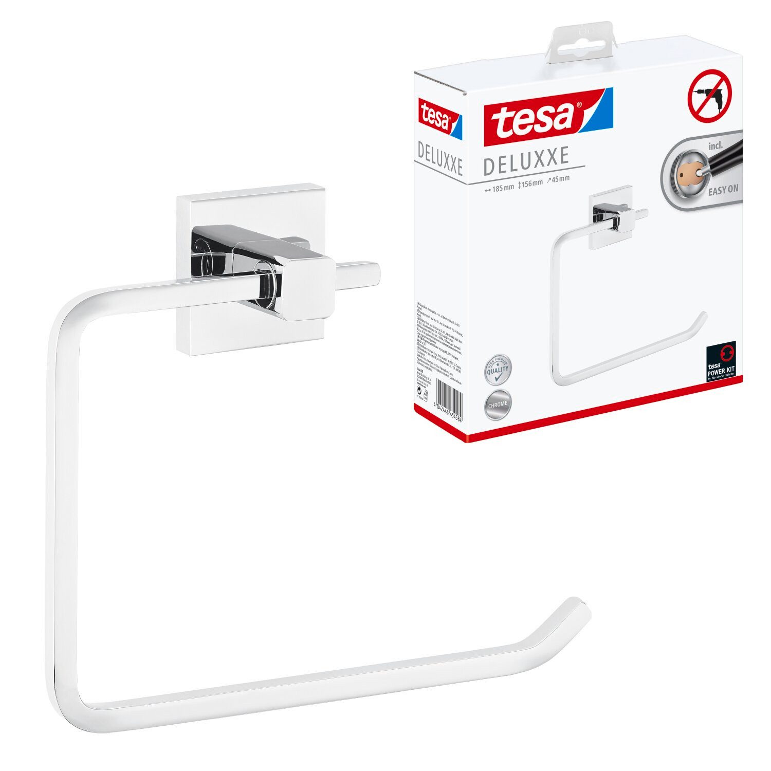 Wenn es um das Aufhängen von Handtüchern geht, ist der tesa® DELUXXE Handtuchring angesichts der unzähligen Haken und Stangen ein echter Exot. Mit seinem exquisiten Design ist er ein echter Hingucker. Eckige Formen und glänzende Oberflächen dominieren. Der Handtuchring überzeugt mit einer bequemen Montage, die dank Klebelösung ohne Bohren auskommt. Sie benötigen lediglich den Befestigungsadapter, die Klebmasse und einen Sechskant-Schlüssel (im Lieferumfang). Ihre Wand bleibt stets unbeschädigt. Sie können den Ring jederzeit wieder ablösen und mit einem neuen Adapter (BK20) wiederverwenden. tesa.Power.Kit Glue: Achtung! Bei der Verwendung kann gefährlicher lungengängiger Staub entstehen. Staub nicht einatmen.