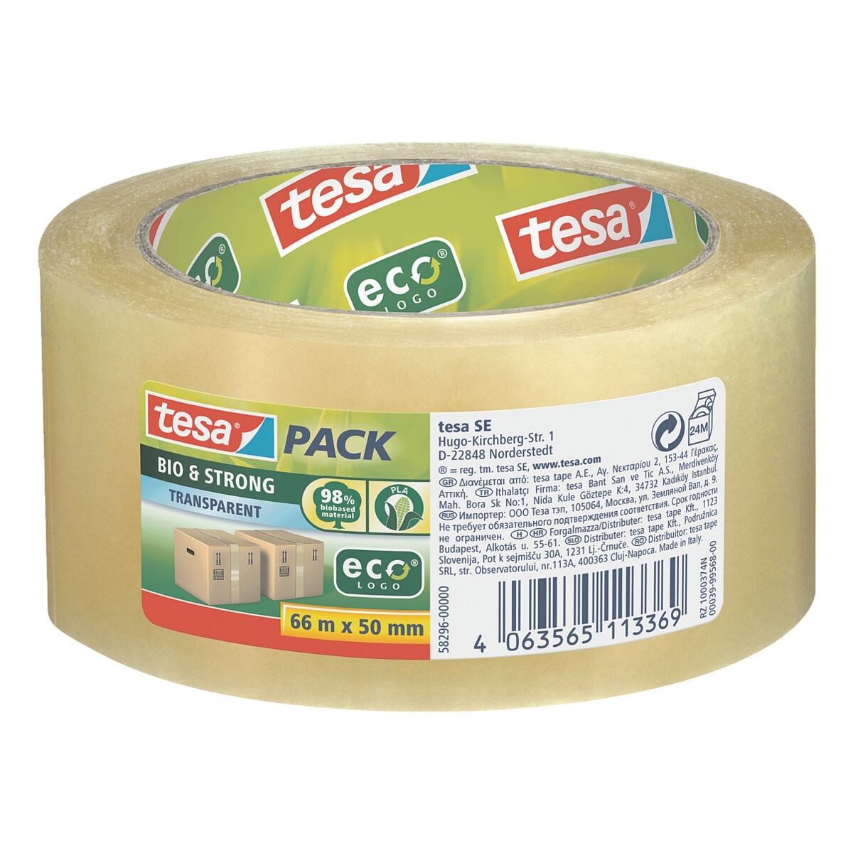Packband »tesapack Bio & Strong« 50 mm / 66 m 58296, umweltbewusstes Klebeband zum Verschließen von schweren Kartonagen, auch geeignet zum Verpacken und Bündeln, verwendbar in manuellen und automatischen Abrollern, Produktvorteil: hohe Klebkraft / starke Haftung, besteht zu 98% aus biobasiertem Material, Trägermaterial: PLA (Maisstärke), Klebstoff: biobasiert / lösungsmittelfreies Beschichtungsverfahren, Bandmaße (B/L): 50 mm / 66 m, Farbe: transparent, Inhalt pro Pack: 1 Stück