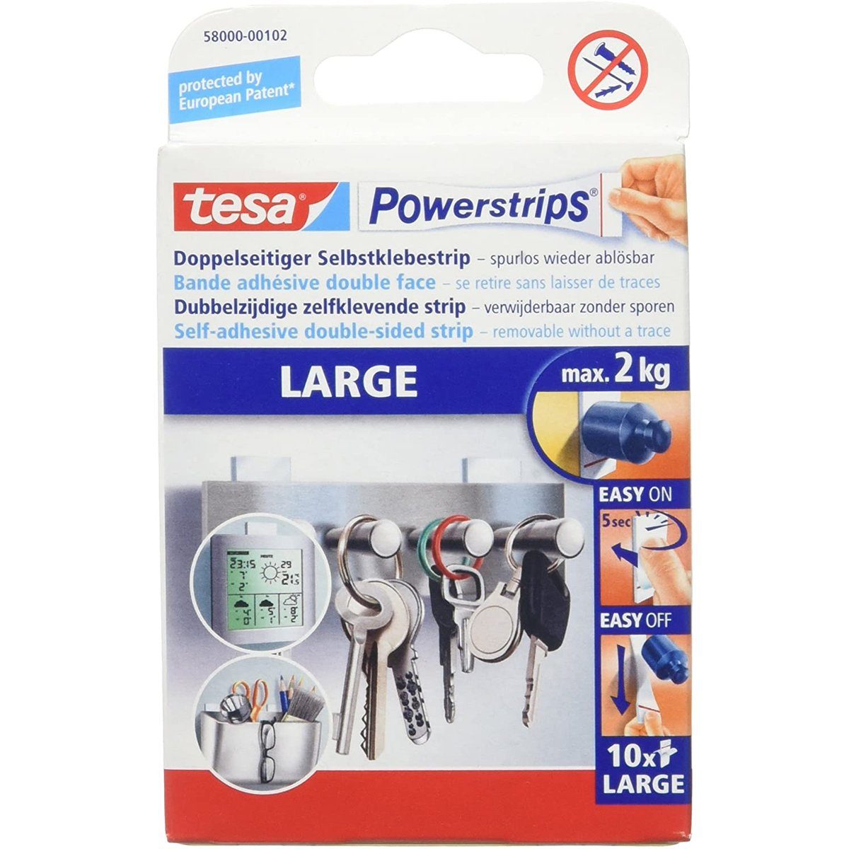 Die großen tesa Powerstrips eignen sich zum Befestigen von Objekten mit einem Gewicht bis zu zwei Kilogramm und sind vielseitig einsetzbar. Die Klebestreifen kleben beidseitig und sind dank ihrer hervorragenden Haltekraft eine smarte Alternative zu Bohrer, Hammer, Schraube und Nagel. Da sie sich einfach anbringen und rückstandslos entfernen lassen, sind die Klebestreifen zudem eine sehr saubere Lösung.