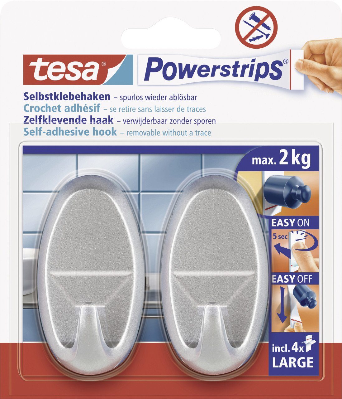Produktdetails: Farbe: chrom | Material: Kunststoff | Maß: 2,3 x 3,7 x 6,9 cm | Befestigung: zum Kleben | belastbar bis zu 2 kg | geeignet für die Verklebung auf Kacheln, Glas, Holz, Kunststoff und vielen anderen Untergründen* | jederzeit spurlos wieder ablösbar** durch die tesa Powerstrips Technologie | die Haken Large sind mit neuen tesa Powerstrips Large mehrfach verwendbar | der Powerstrip wird vom Hakenkörper vollständig verdeckt |