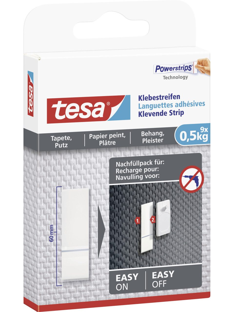 Lassen Sie den Bohrer oder Hammer im Schrank, denn die Klebelösung erledigt den Job ohne die Hilfe von Werkzeugen. Mit den Klebestreifen vermeiden Sie Schäden am Untergrund, anders als bei Schrauben und Nägeln, und verursachen keinen Schmutz. Die Klebestreifen verfügen über eine Haltekraft von bis zu 500 g auf strukturierten und empfindlichen Untergründen wie Tapeten und Putz und zeigen, dass es clevere Alternativen zu den traditionellen Befestigungs- und Aufhängungslösungen gibt. Reinigen Sie den Untergrund mit einem trockenen, staubfreien Tuch und drücken Sie den Klebestreifen mindestens fünf Sekunden gleichmäßig und fest an. Ziehen Sie den Klebestreifen nach der Anwendung vorsichtig und parallel zur Oberfläche nach unten. Es bleiben keine Rückstände haften. Die hochwertigen Klebestreifen eignen sich ideal zur Wiederverwendung des tesa Klebenagels. Mit dem innovativen Klebenagel können Sie leichte Dekorationsobjekte sicher aufhängen.