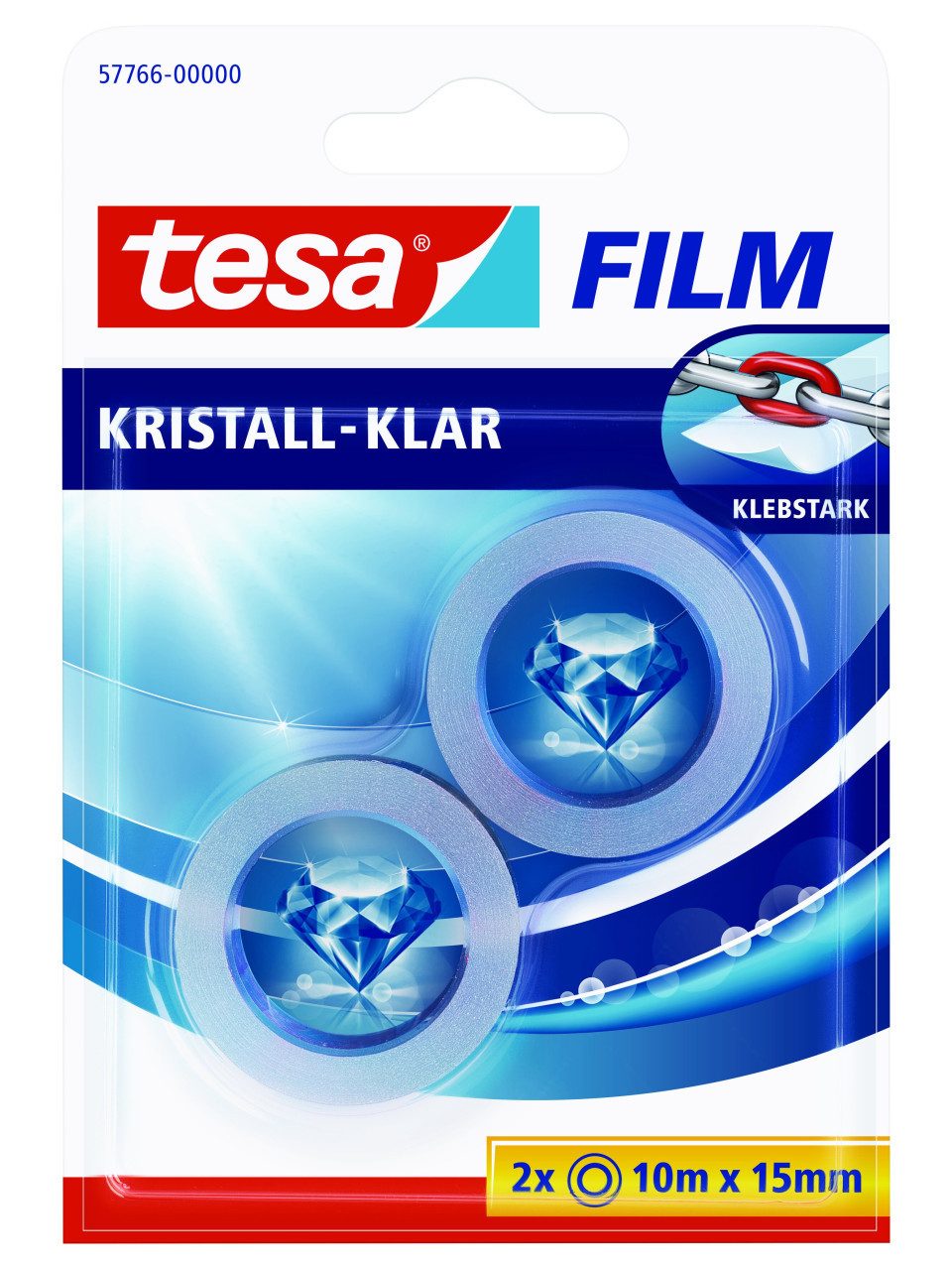Produktdetails: Farbton: kristall-klar | Abmessungen: 10 m x 15 mm | nahezu unsichtbar auf fast allen Untergründen | stark klebend | hohe Alterungsbeständigkeit | geräuschloses Abrollen | PP-Folie und lösungsmittelfreie Klebmasse | Klebefilm mit hoher Transparenz | für alle tesafilm® Abroller geeignet | Packungsinhalt: 2 Stück |