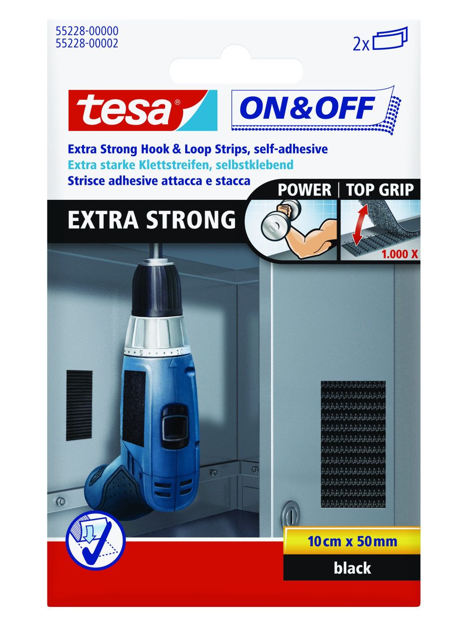 Im Haushalt, im Büro oder in einer Werkstatt gibt es viele Gegenstände, die schnell zur Hand sein müssen. Damit man sie nicht in Schränken oder Schubladen suchen muss, hat tesa® mit der On & Off-Produktserie innovative Klettlösungen entwickelt. Durch die überlegene Klebetechnologie, das stabile Hakenmaterial und die besondere Krallenform der Haken entwickeln die extrastarken Klett Klebepads - ohne Bohren - eine besonders große Haftkraft. Die Klettstreifen lassen sich bis zu 1.000 mal öffnen und schließen und eignen sich z.B.