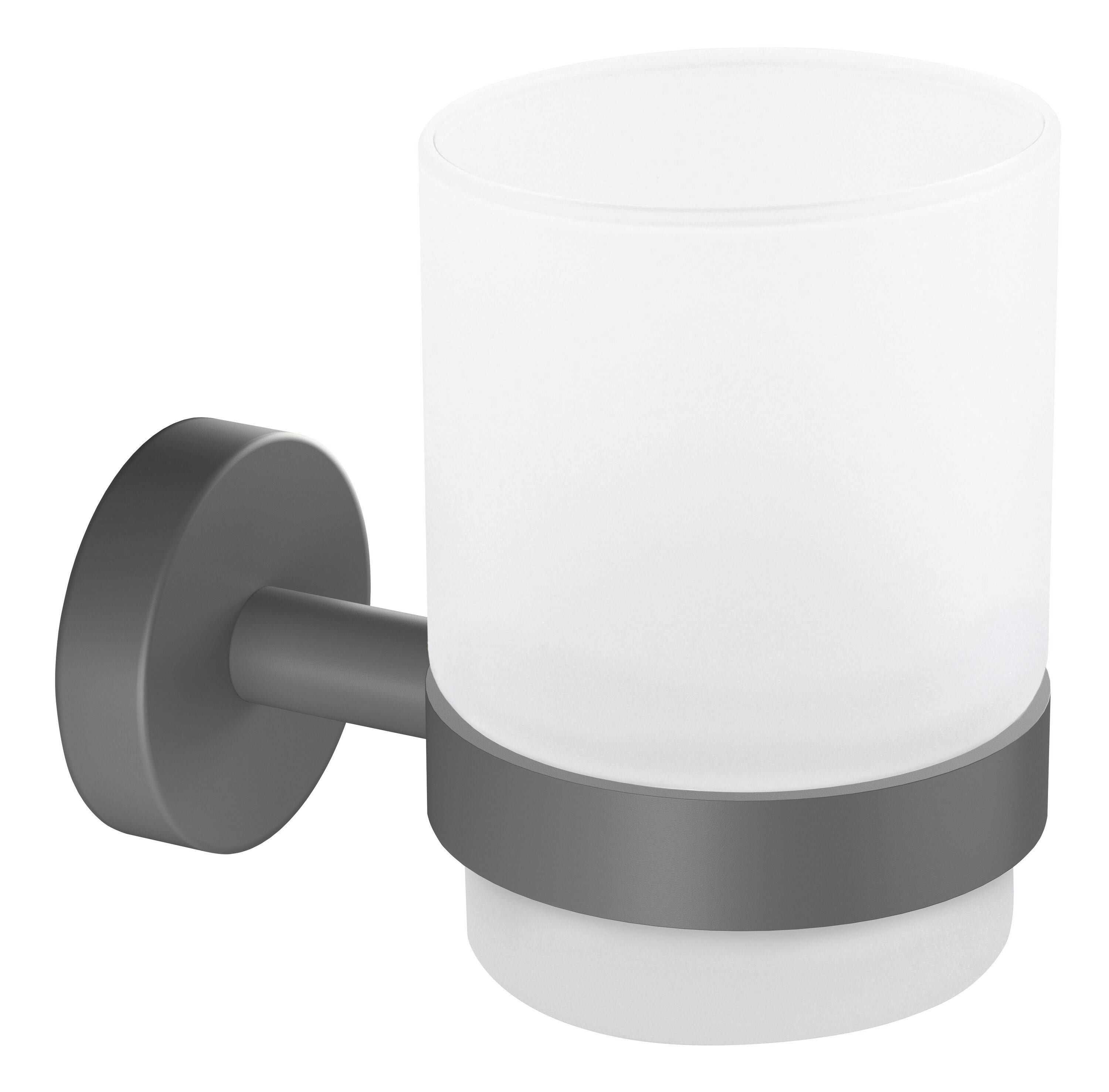 Der elegante Zahnputzbecher aus Satinglas mit Halter: Ideal für Bäder mit Farbkonzept fügt er sich harmonisch ins monochrome Bad - jedoch auch als Kontrast hervorragend kombiniert