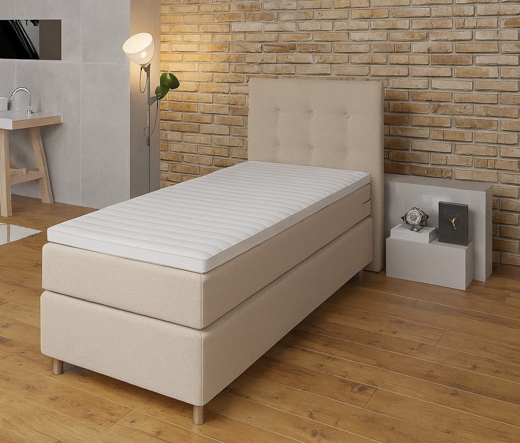 Ausstattung | Taschenfederkern-Unterbox, 7-Zonen-Matratze, Topperwahl, Härtegrad H2/H3, abnehmbarer Bezug, 10 cm Füße |