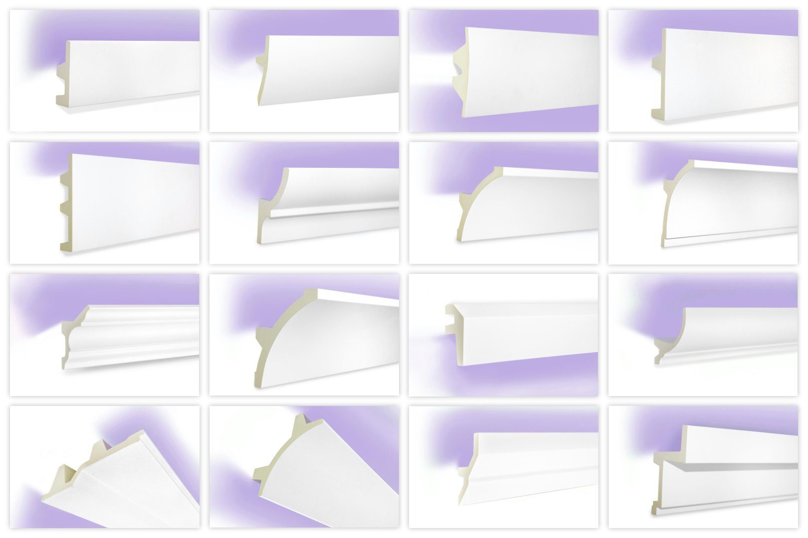 Unsere lichtundurchlässigen LED Profile aus Polyurethane bieten den perfekten Wandabschluss mit indirekter Beleuchtung. Dank dem gipsähnlichen Material Polyurethane erhält das LED Profile nicht nur eine stoßfeste Beschaffenheit sondern auch eine Resistenz gegen Schimmel- und Feuchtigkeit, was die Montage im Bad- oder Wellnessbereich ermöglicht. Unebenheiten können geschickt kaschiert und zudem die Höhe der Decke visuell erhöht werden. Setzen Sie, dank der indirekten Beleuchtung, einen spektakulären Fokus auf alle im Raum vorhandenen Möbel- oder Dekorstücke. Durch die Möglichkeit des individuellen Anstrichs lassen sich unsere LED Profile Ihren Wünschen entsprechend anpassen. Trotz der holzähnlichen Härte lassen sie sich sehr einfach schneiden und verarbeiten. Auch für handwerkliche Laien ist unsere Leiste aufgrund des geringen Gewichts und der unkomplizierten Montage sehr zu empfehlen.