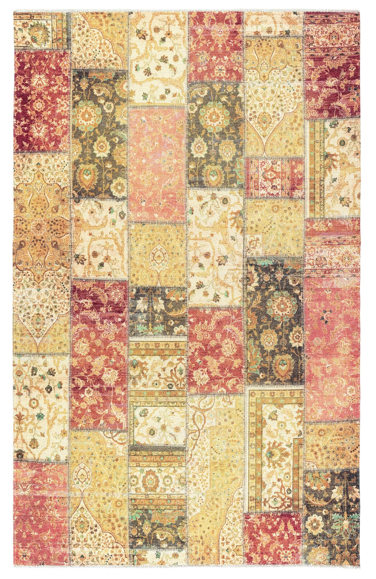 Hinweis Design | Der vintage Look steht im besonders auffälligen Kontrast zu den kraftvollen Farben. Das Patchwork Design trägt ebenfalls dazu bei, dass dieser Teppich ein absoluter Hingucker ist. |