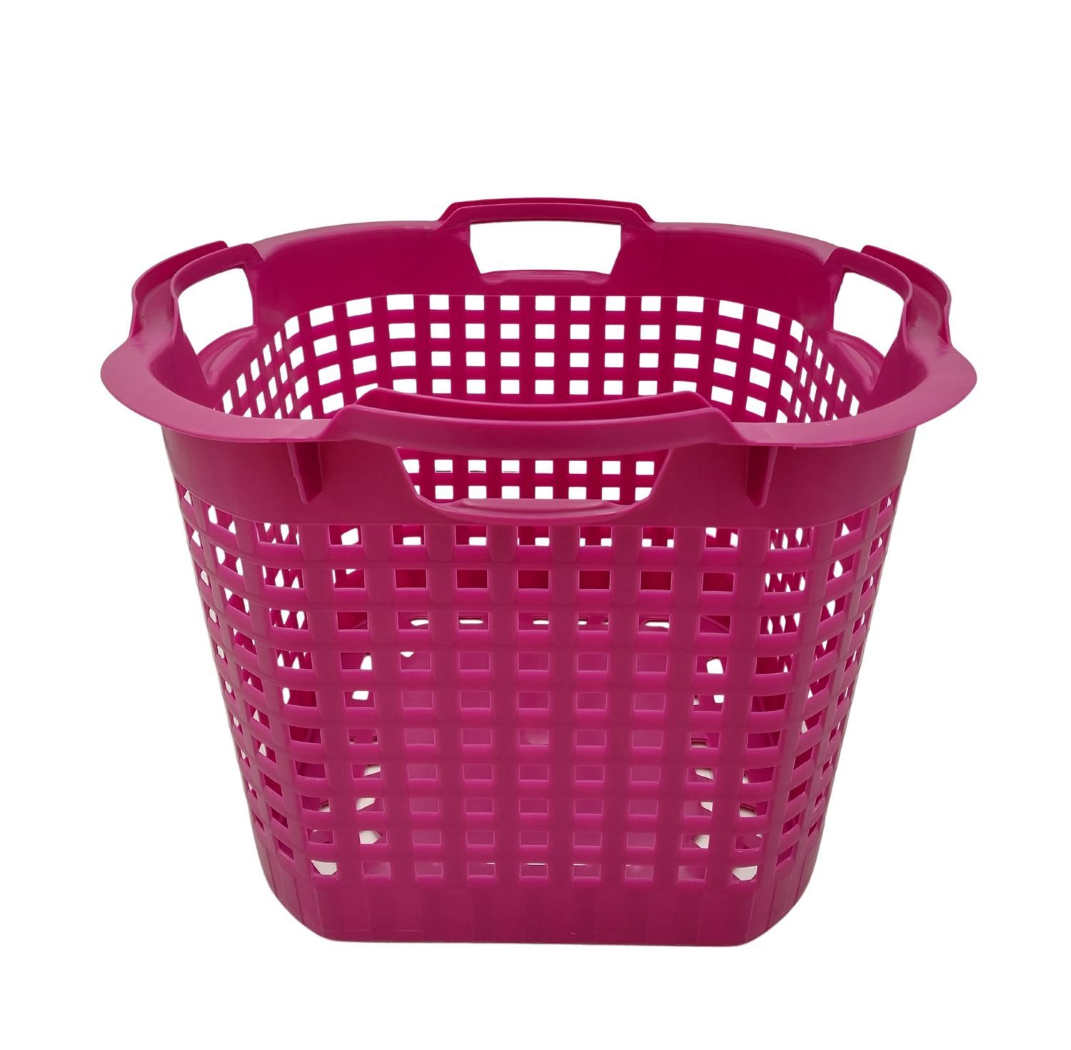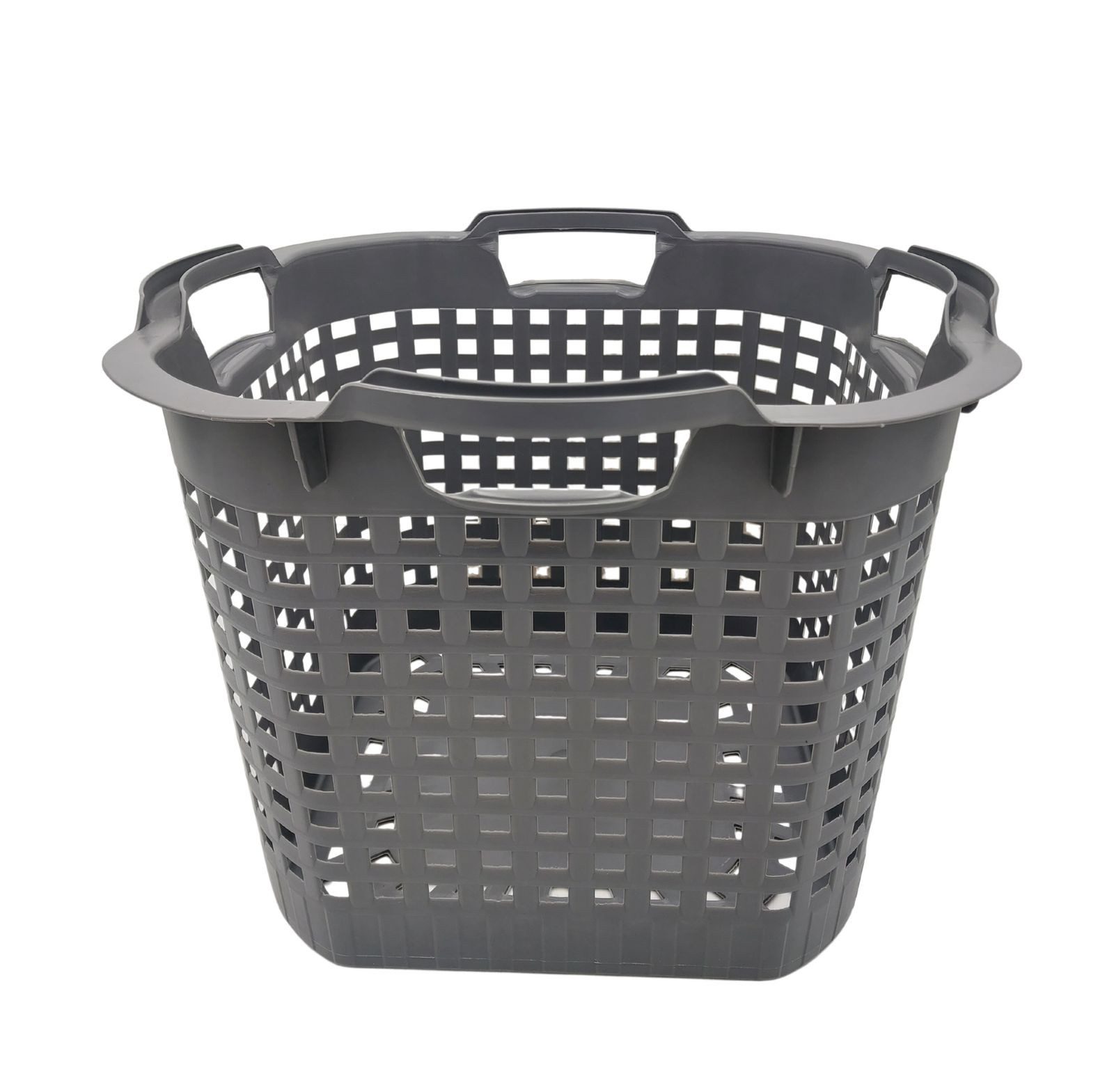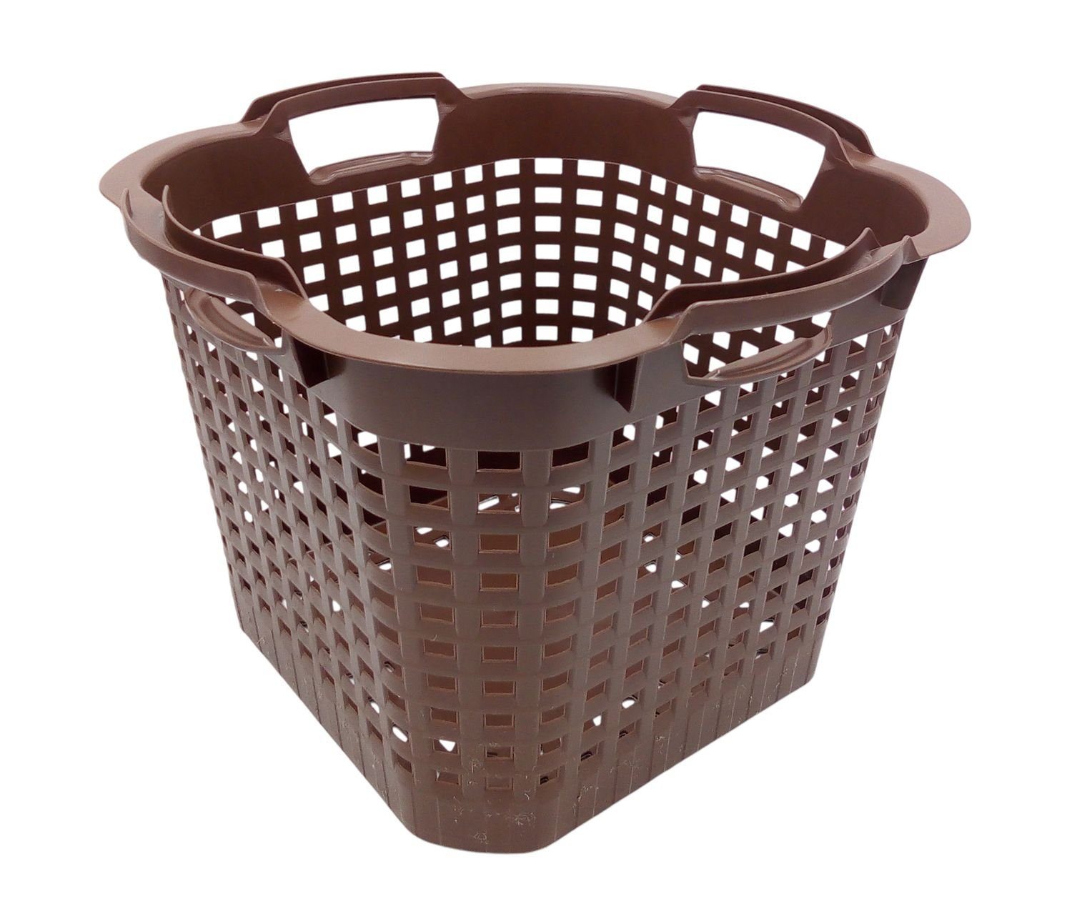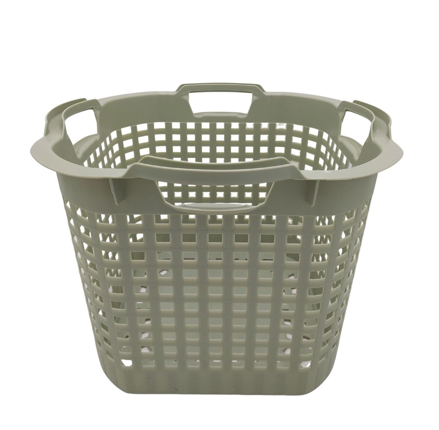 Der Korb besitzt vier robuste Griffe für ein bequemes und sicheres Tragen. Durch sein Volumen von 50 Litern und die großzügigen Maße von 54x54x32 cm bietet er ausreichend Platz für Obst, Gemüse, Wäsche oder andere Haushaltswaren.