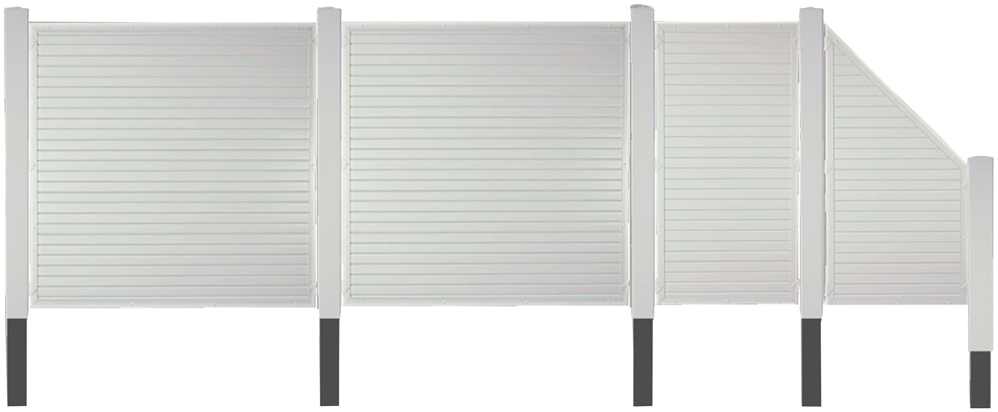 Lieferumfang | 1 Ecke 90 x 180 cm 1 Element 90 x 180 cm 1 Pfosten 9 x 9 x 150 cm inkl. Abdeckkappe Pyramide 2 Kunststoff-Sichtschutzelemente 180 x 180 cm inkl. Halter 4 Pfosten 9 x 9 x 240 cm |