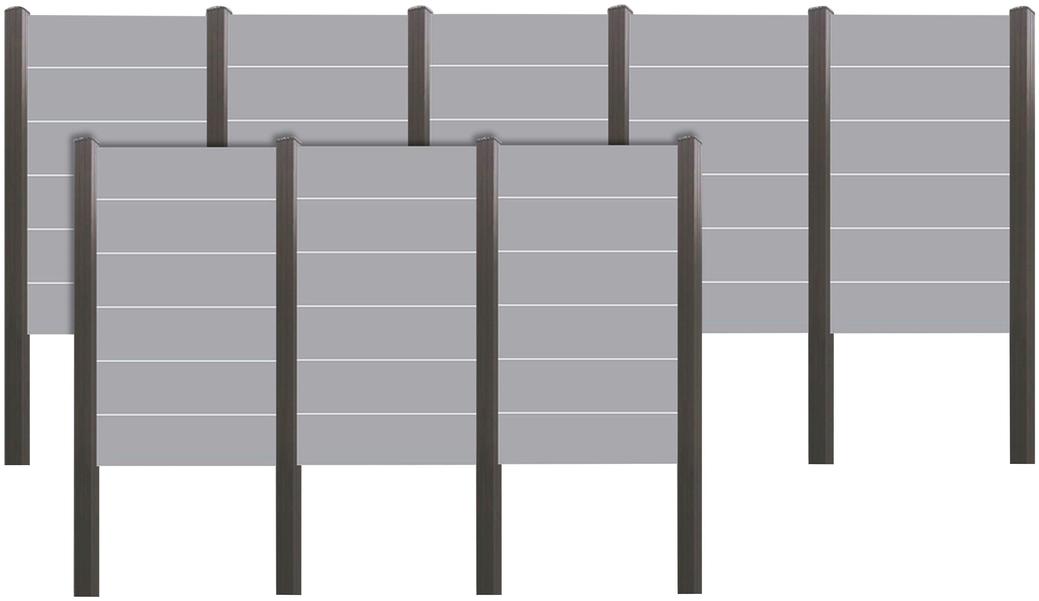 Lieferumfang | 8 ESG-Glasscheiben 103 x 174 cm satiniert 8 Universalglasleistensets Aluminium anthrazit 9 Aluminium-Systempfosten anthrazit 6,8 x 6,8 x 240 cm |