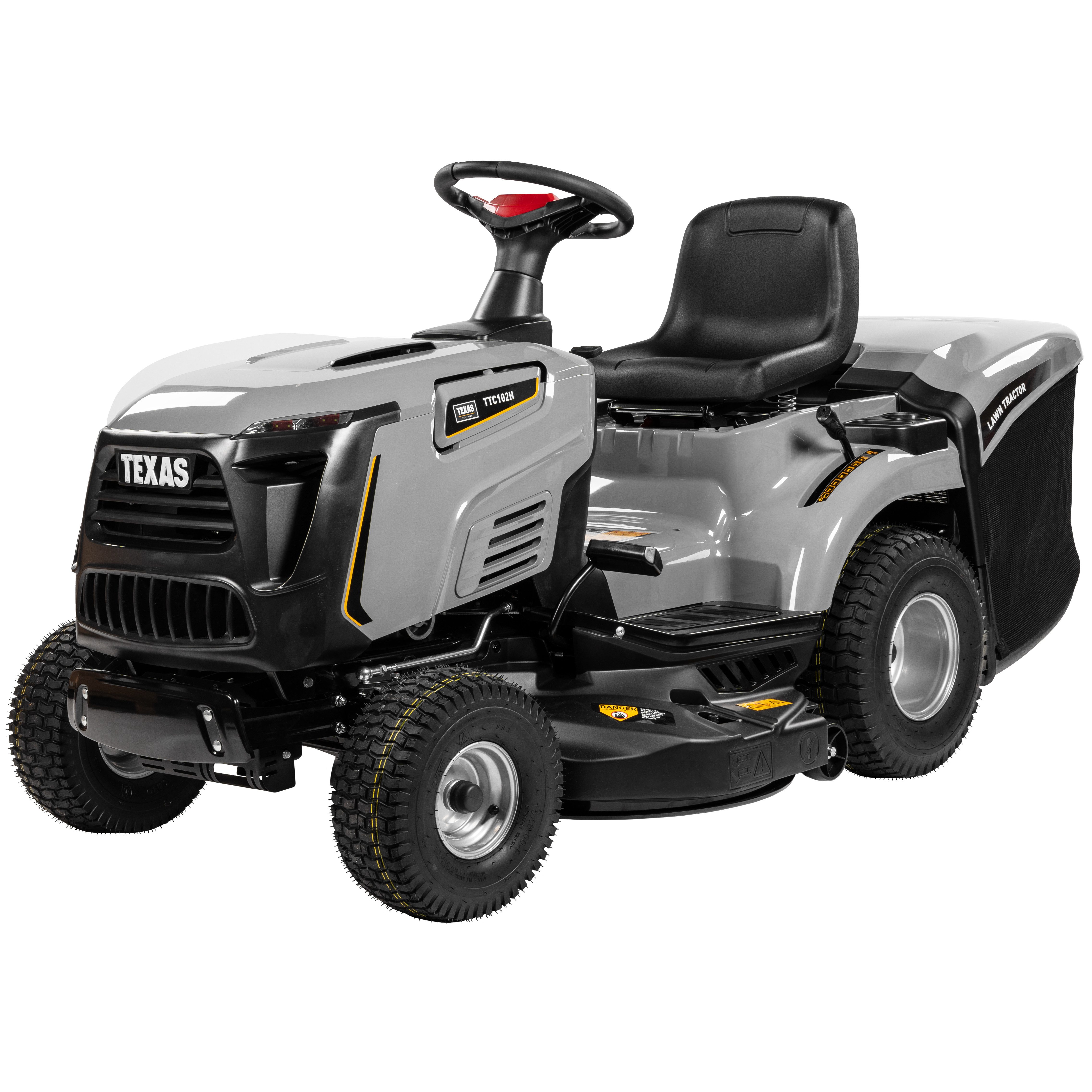 Der TTC102H ist Teil einer neuen Linie von TEXAS Rasentraktoren, bei dem Sie einen besonders großen Motor mit ganzen 452 cc, einen integrierten Gras- und Laubsammler, ein hydrostatisches Getriebe, mit dem Sie die Geschwindigkeit stufenlos leicht anpassen können, sowie viele andere intelligente Funktionen erhalten. Der Rasentraktor eignet sich hervorragend zum Mähen selbst der größten Rasenflächen, ist vielseitig für viele andere Aufgaben einsetzbar und angenehm, immer wieder über viele Jahre hinweg zu nutzen. Dieser TTC102H Rasentraktor mit Fangkorb ist auf einem robusten Rahmen aufgebaut und verfügt über ein solides Mähdeck aus Stahl mit einer ganzen Schnittbreite von 102 cm, wo zwei elektromagnetisch aktivierte Messer das Gras effizient entweder kurz oder lang schneiden können. Genießen Sie praktische Funktionen wie Elektrostart mit Schlüssel, einen niedrigen Wendekreis von nur 45 cm und die Möglichkeit, viel Rasentraktorzubehör zu wählen, wenn Sie sich für TEXAS entscheiden. So mäht er Der TEXAS TTC102H Rasentraktor kann sowohl zum Mähen von Gras im gewöhnlichen Garten verwendet werden, wenn Sie die Arbeit komfortabler gestalten möchten, aber besonders auf großen Grundstücken zeichnet sich der Rasentraktor aus. Der leistungsstarke Motor liefert ganze 7,8 kW und bietet Ihnen viel Kraft, um das Gras effizient zu mähen, selbst wenn es auf großen Flächen sehr hoch ist. Mit der zentralen Schnitthöheneinstellung können Sie 7 Mähhöhen wählen. Die Doppelmesser unter dem soliden Mähdeck aus Stahl mit einer Schnittbreite von 102 cm sorgen für ein schöneres Mähergebnis als bei nur einem Messer, und da die Messer elektromagnetisch aktiviert sind, haben Sie eine bessere Kontrolle und weniger Verschleiß am Motor. Der große Fangkorb mit ganzen 245 L ermöglicht es Ihnen, lange Zeit zu mähen, ohne anhalten zu müssen, und Sie können auch einen Mulching Plug erwerben, sodass Sie das Gras einfach liegen lassen können. Und beim TTC102H haben Sie auch den Luxus, dass Sie mähen können, während Sie zurücksetzen. Nützliche Details Beim TTC102H erhalten Sie ein hydrostatisches Getriebe, sodass Sie ein stufenloses Pedal haben, das praktisch wie eine Art Automatikgetriebe funktioniert. Dies erleichtert es erheblich, Ihre Geschwindigkeit anzupassen, wenn Sie vorsichtig um Blumenbeete und Hindernisse manövrieren oder wenn Sie nachgerüstetes Zubehör verwenden. Und mit einem inneren Wendekreis von nur 45 cm erhalten Sie auch einen sehr wendigen Rasentraktor. Die vorderen Räder sind 15" und die hinteren 18", und alle vier Räder haben ein ausgeprägtes Profil, das Ihnen einen guten Griff auf dem Untergrund sichert, während ihre große Breite sie schonender für den Rasen macht. Vorne finden Sie einen praktischen Stoßfänger, der vor Beschädigungen schützt, und Sie haben auch ein Set von LED-Scheinwerferlicht, damit Sie sehen können, wohin Sie fahren, wenn Sie in den dunklen Stunden arbeiten. Und da der TTC102H einen Elektrostart mit einem Schlüssel hat, ist es immer einfach, mit der Arbeit zu beginnen. Benutzerfreundlichkeit Der TTC102H ist ein langlebiger Rasentraktor, den Sie viele Jahre lang zum Grasmähen - und für vieles mehr nutzen können. Bei TEXAS können Sie nämlich eine Menge praktisches Zubehör bekommen, sodass Sie auch vertikutieren, rechen, Salz oder Samen streuen, mit einem Anhänger fahren oder Moos entfernen können, und somit Ihren Rasentraktor viel nützlicher machen. Außerdem verfügt er über mehrere benutzerfreundlichen Details, die die Arbeit wesentlich angenehmer machen. Sie erhalten einen verstellbaren Sitz, bei dem alle Bedienelemente in Reichweite sind, wenn Sie sitzen - und Sie können sogar den Fangkorb leeren, ohne aufzustehen. Es gibt auch zwei praktische Fächer auf jeder Seite des Sitzes - eines mit Getränkehalter und eines zur Aufbewahrung von z.B. Schlüsseln, Telefon oder Snacks. Und mit dem großen Kraftstofftank von 7,5 L können Sie daher lange im Sitz bleiben, bevor Sie anhalten müssen.