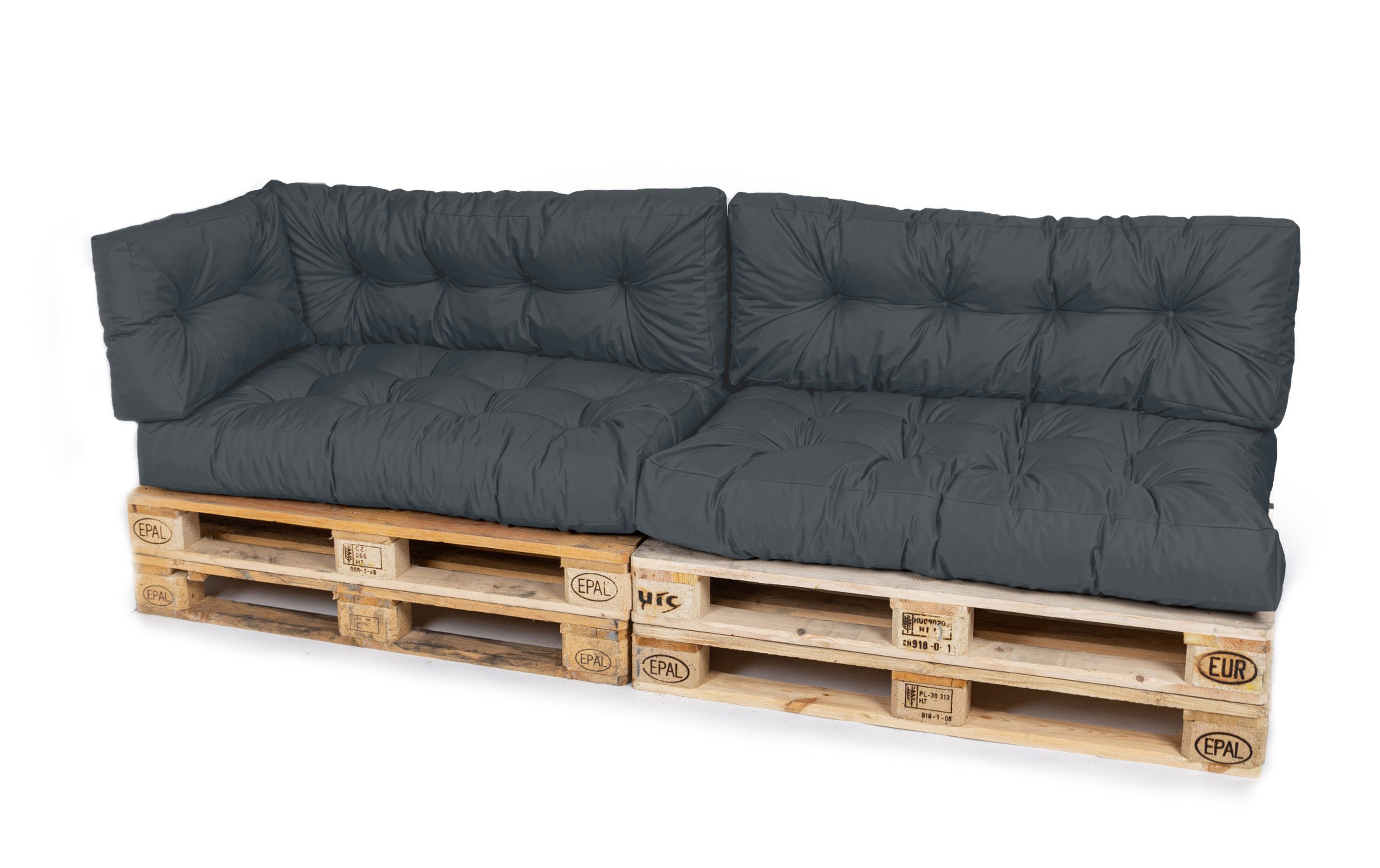 Ein gutes Kissen für Europalette ist sorgfältig gesteppt, damit die ausreichende Flockenfüllung stets an Ort und Stelle bleibt. Somit ergibt sich ein optimaler Sitz- und Liegekomfort. Die perfekte Passform für Europaletten ist die Размер 120x80cm, die Kissen passen im Innen- & Außenbereich perfekt auf die Palette und ergeben eine komfortable Sitzfläche. Für die Rückenlehne sind bequeme Palettenkissen in der Размер 120x40cm ideal geeignet.