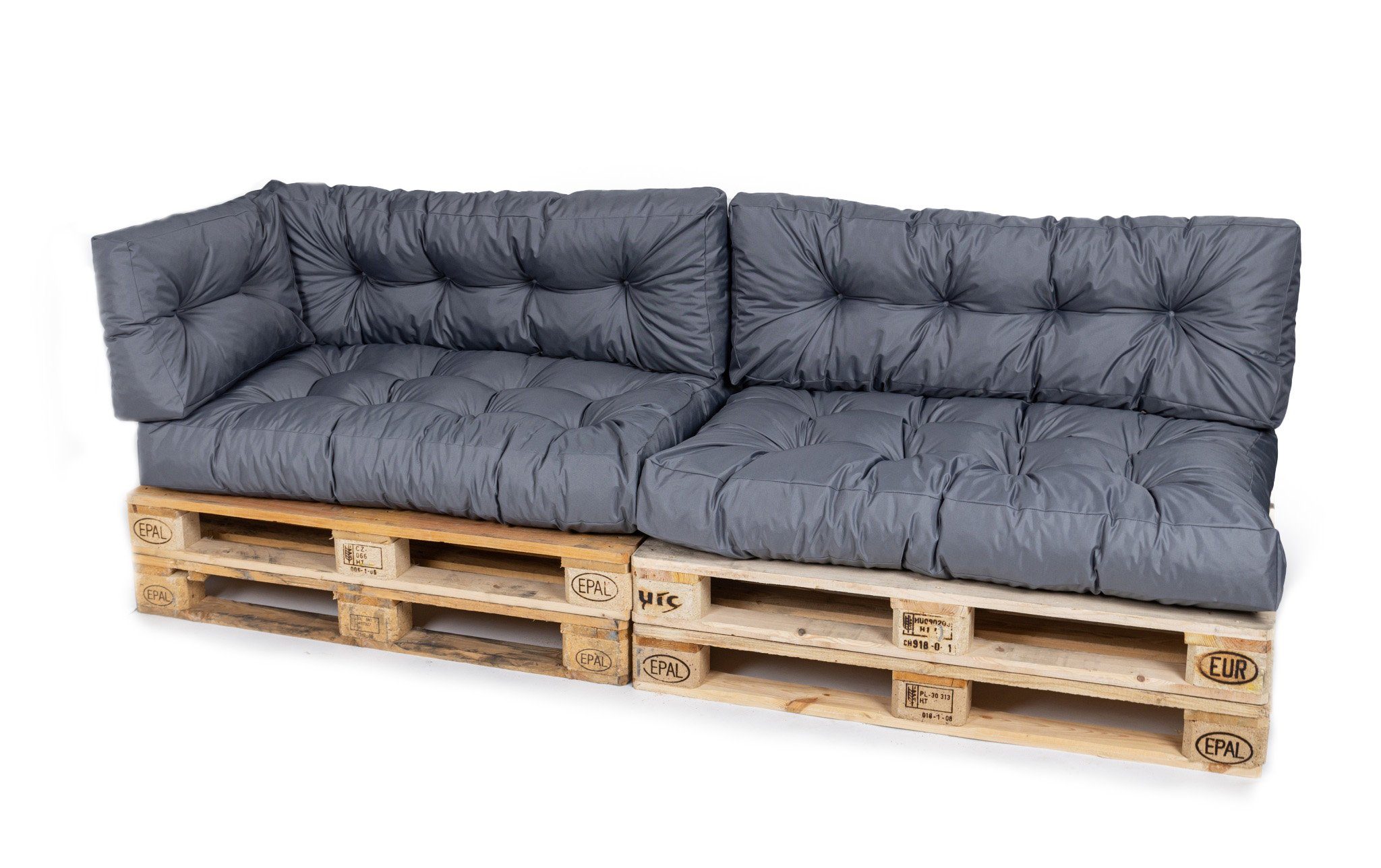 Lieferumfang | 2x Palettenkissen, 2x Rückenkissen, 1x Seitenkissen |