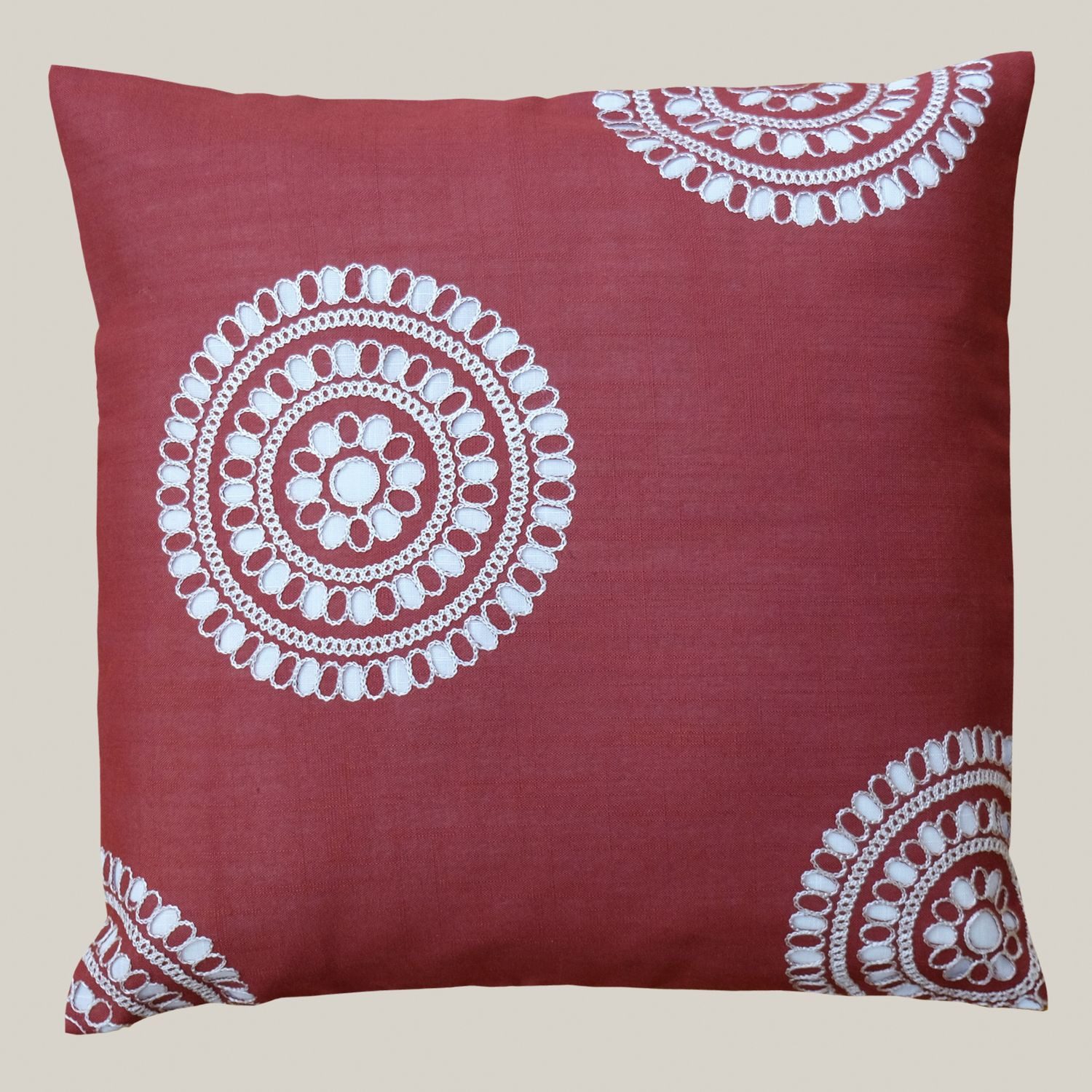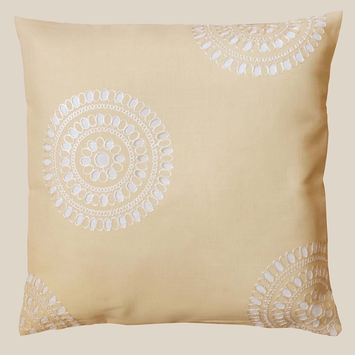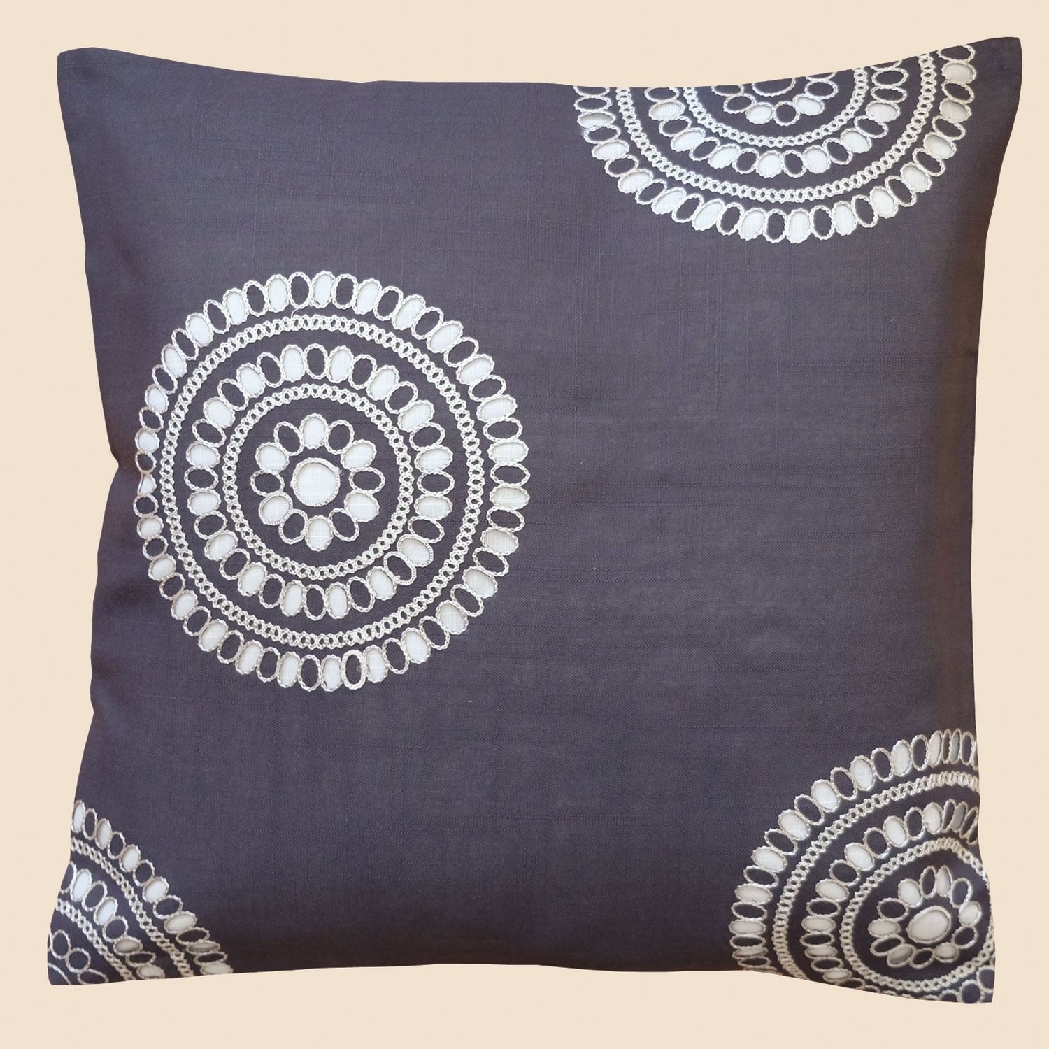 Setzen Sie stilvolle Akzente in Ihrem Wohnraum mit dieser Kissenhülle aus 100% Polyester, die mit einer modernen Kreise-Stickerei verziert ist.
