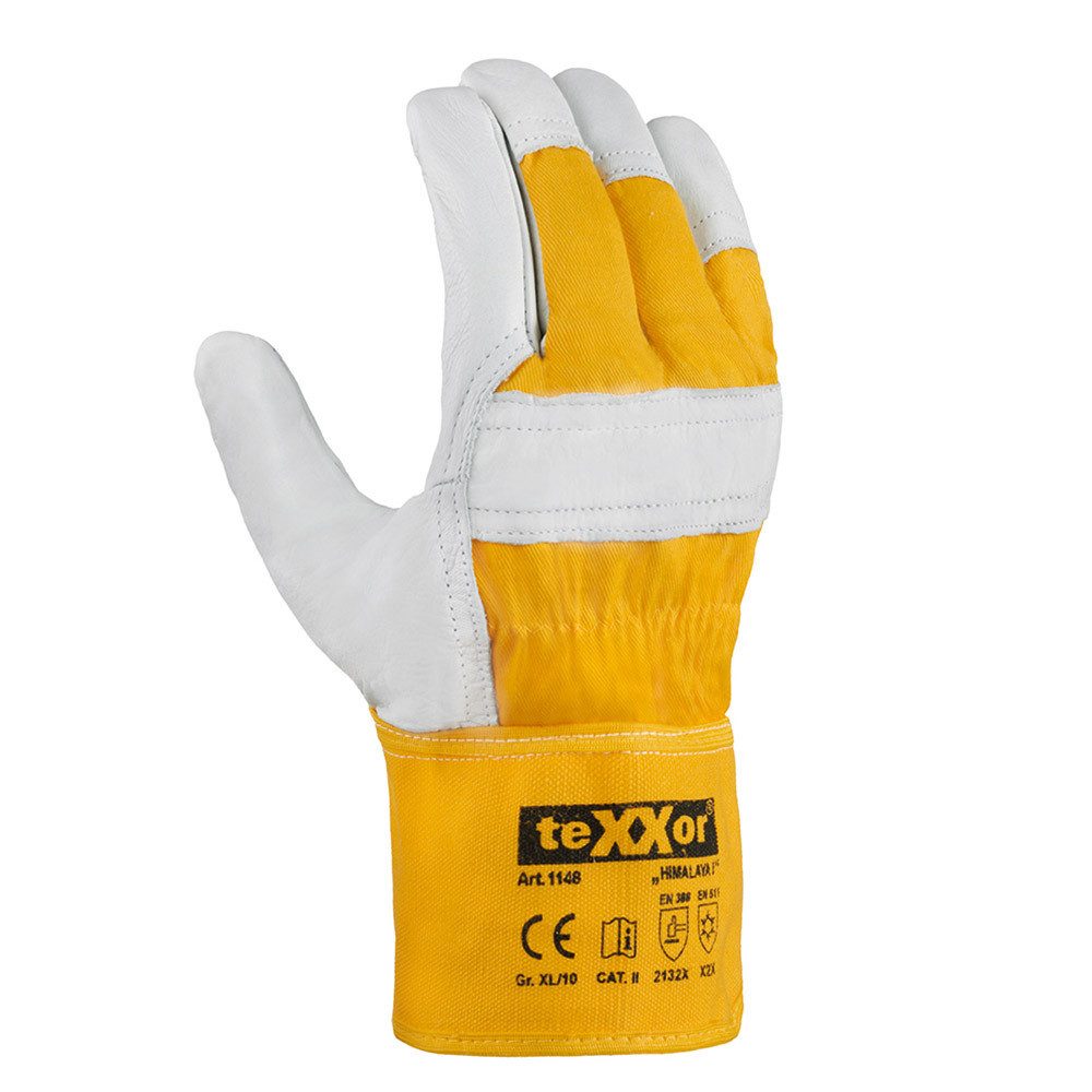 Rindvollleder, ausgesuchte Lederqualitäten, Stulpe und Einlage auf der Fingeroberseite aus Baumwolle, Doppelnähte, Futter aus Polyester-Fleece