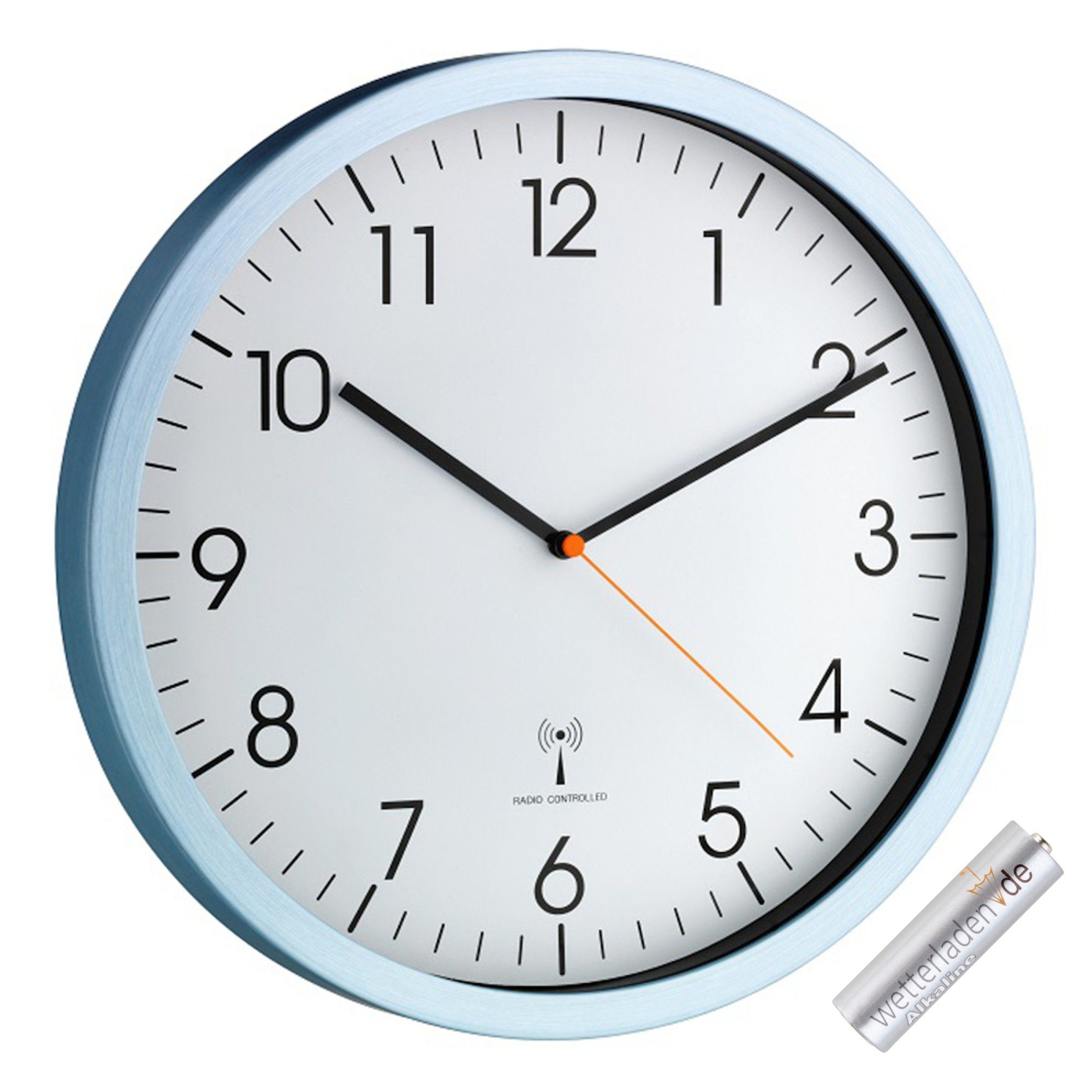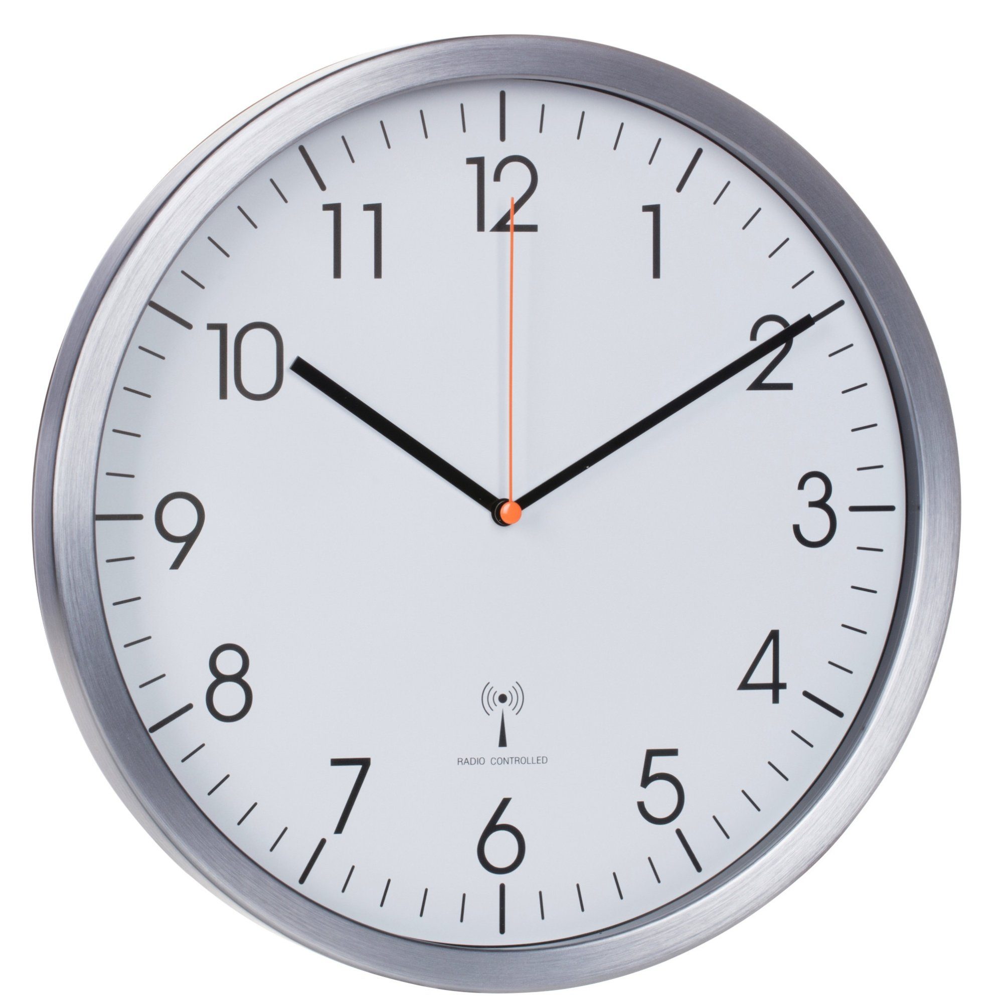 Diese Wanduhr überzeugt durch ihr nahezu lautloses Sweep-Uhrwerk und ihrem mattgeschliffenen Alurahmen