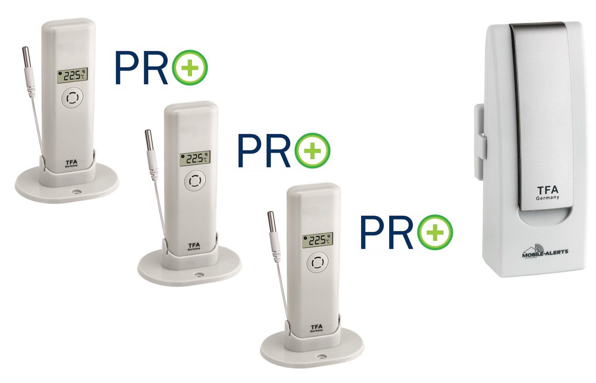 Noch nie war es so einfach, Temperaturwerte professionell zu überwachen und zu dokumentieren. Dieses Set beinhaltet 3 Profi -Temperatursender (Genauigkeit +- 0,8 °C) zum gleichzeitigen Messen der Umgebungstemperatur (innen oder außen) und einer weiteren Temperatur mit dem wasserdichten Kabelfühler. Die Funksensoren senden ihre Daten über das Gateway-Modul und das Internet direkt an einen Server. Dort sind sie über einen Internetbrowser abrufbar. Die Nutzung der WeatherHub-Observer Plattform (www.wh-observer.de) ermöglicht es, die Messwerte jederzeit und weltweit über PC oder Tablet/Smartphone abzurufen und zahlreiche Zusatzfunktionen zu nutzen. Die WeatherHub-Observer Plattform ist kostenfrei und erfordert keine zusätzliche Nutzungsgebühr oder Abo-Kosten Nutzbar sowohl über Windows, Apple und Linux-PCs als auch über Android, iOS und Windows Phone (vollständig browserbasiert und somit nahezu plattformunabhängig)