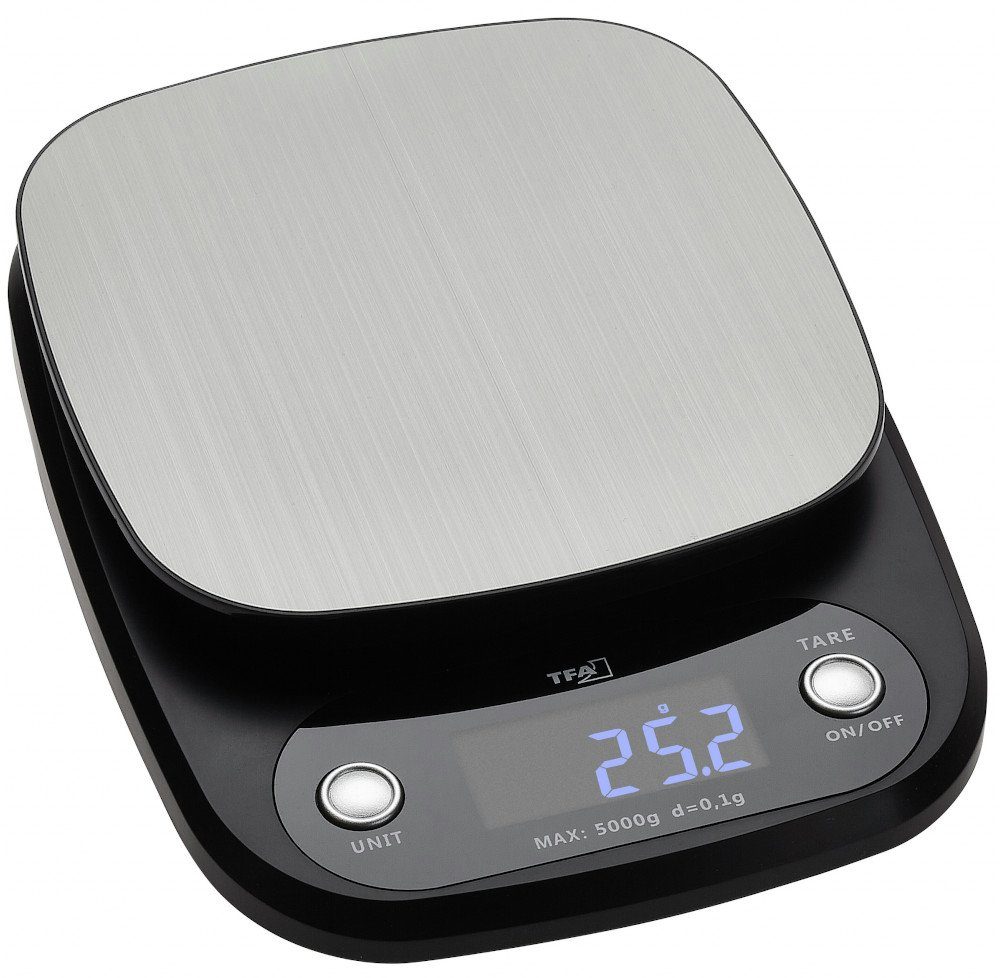 Ob für leckere Backwaren oder neue Kochideen, in keiner Küche darf eine zuverlässige Küchenwaage fehlen. Geben Sie Ihre Zutaten einfach nach und nach in die Schüssel. Die Tara-Zuwiege-Funktion wiegt jeden Posten einzeln für Sie ab. Mit ihrer modernen Form passt die Waage in jede moderne Küche