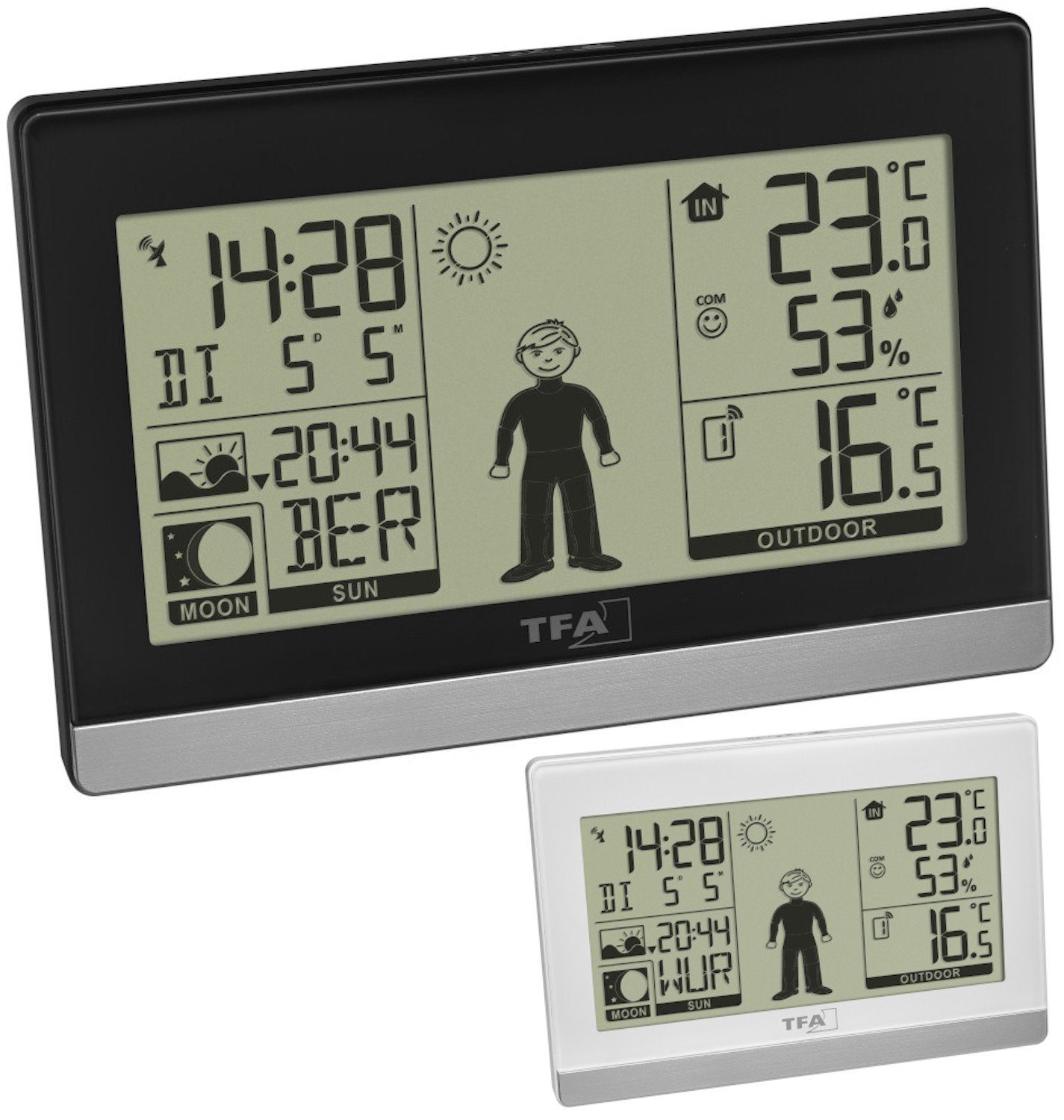 Die Funk-Wetterstation Weather Boy überzeugt nicht nur durch ihr elegantes Design, sondern auch durch die unterschiedlichen Kleidungempfehlungen des Wettermännchens passend zur aktuellen Außentemperatur, die Sie täglich direkt auf Ihren Standort zugeschnitten erhalten. Der dafür notwendige Wert wird über den im Lieferumfang enthaltenen Temperatursender vor Ort im Freien ermittelt (optional auf 3 Sender erweiterbar).
